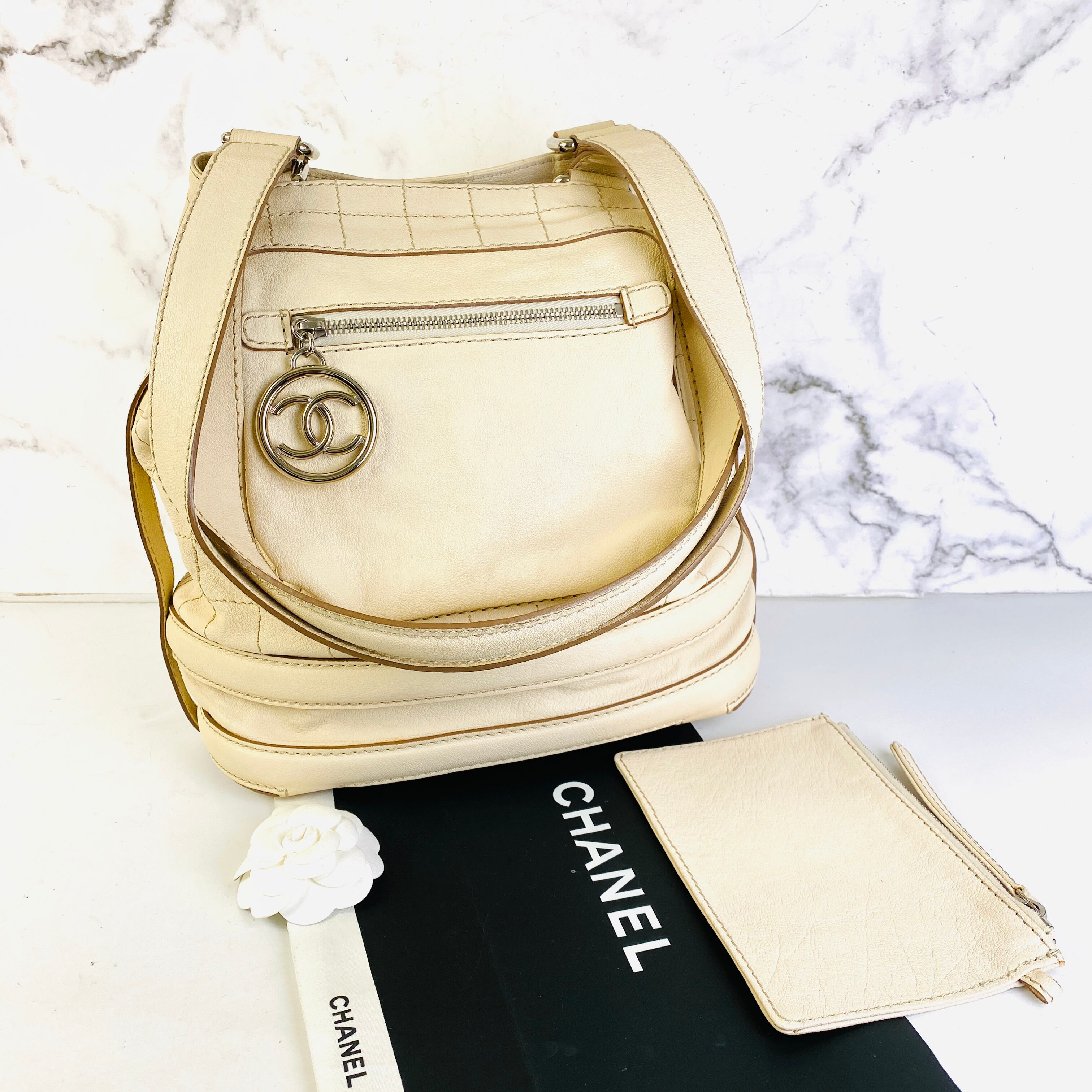 美品 CHANEL シャネル チョコバー レザー トートバッグ ベージュ K-6278
