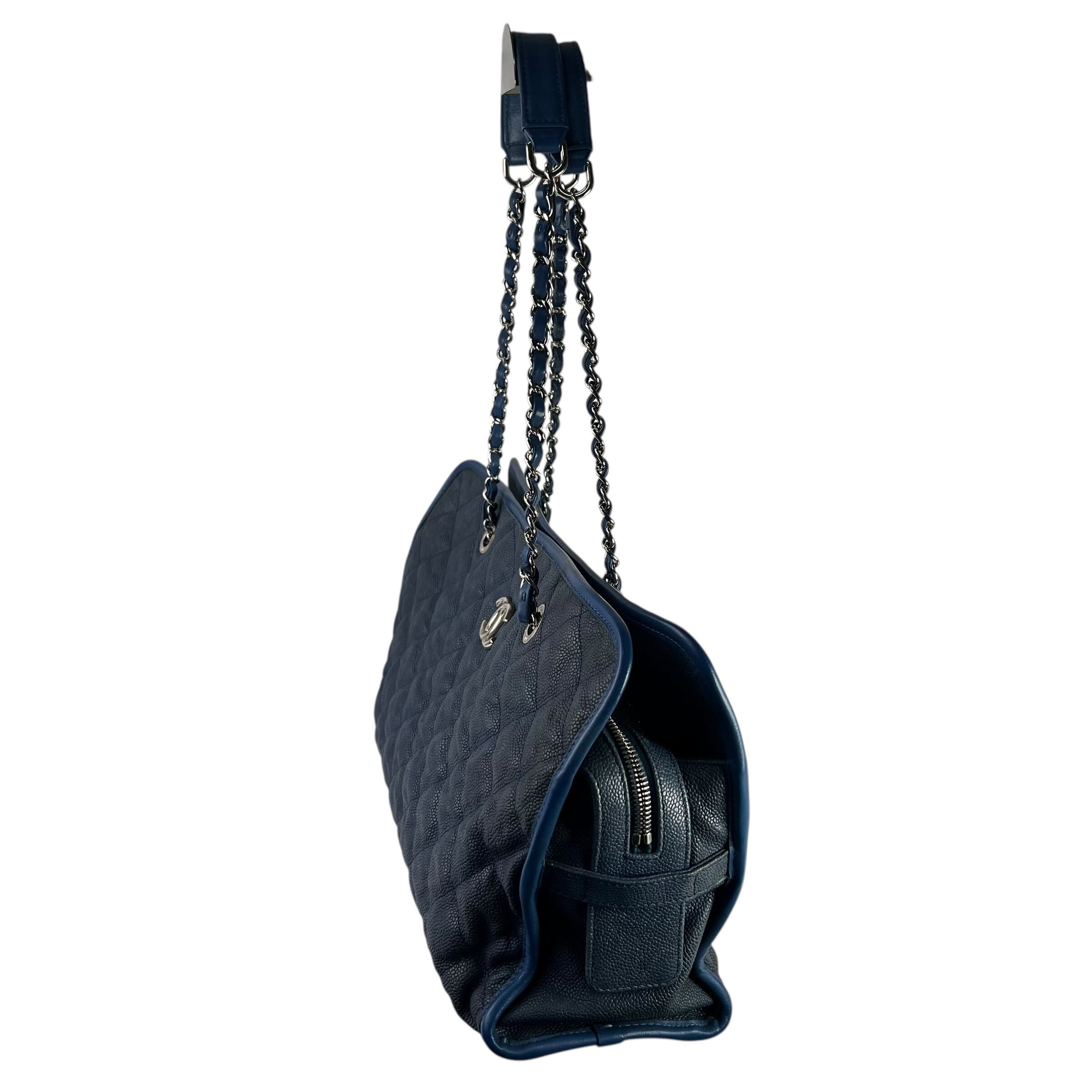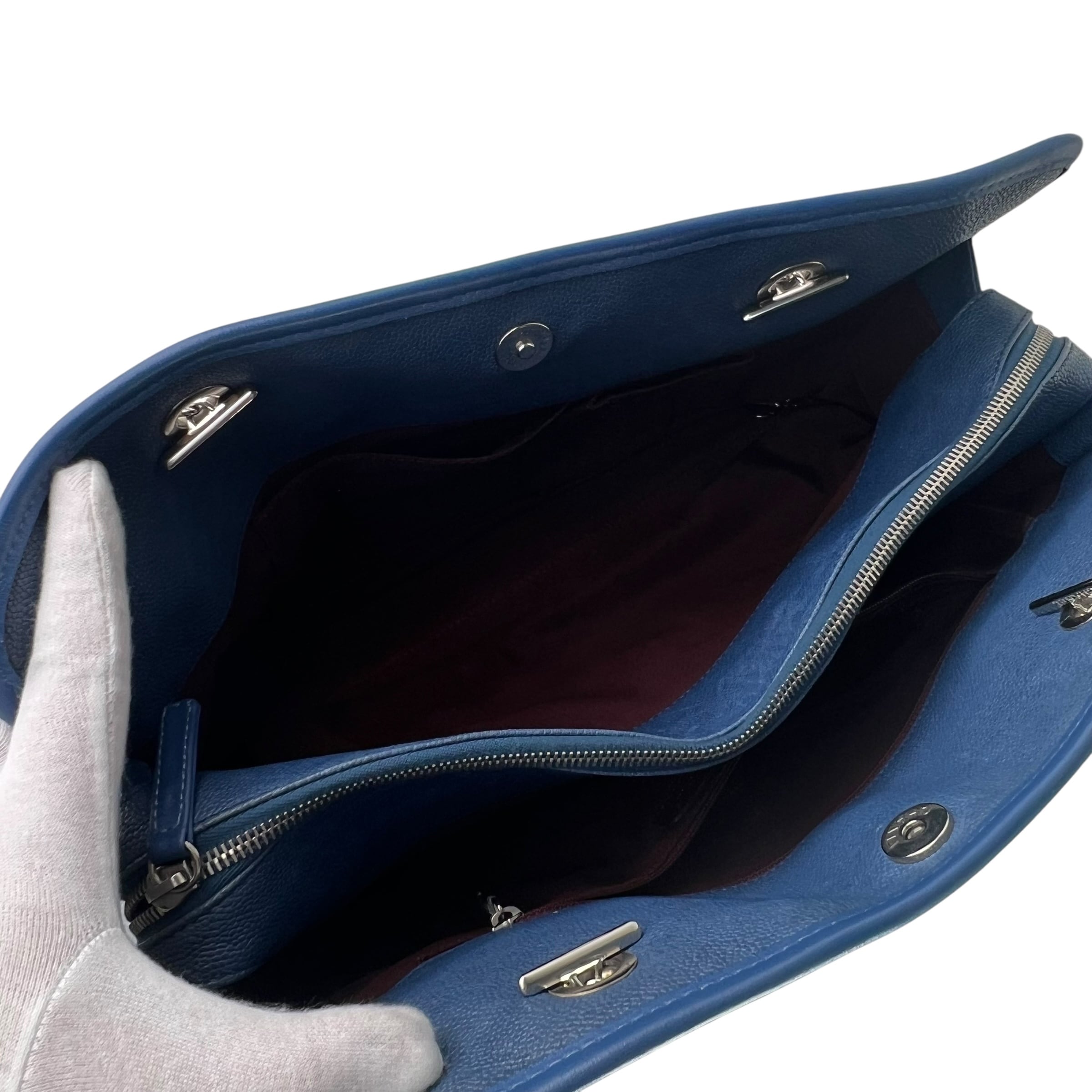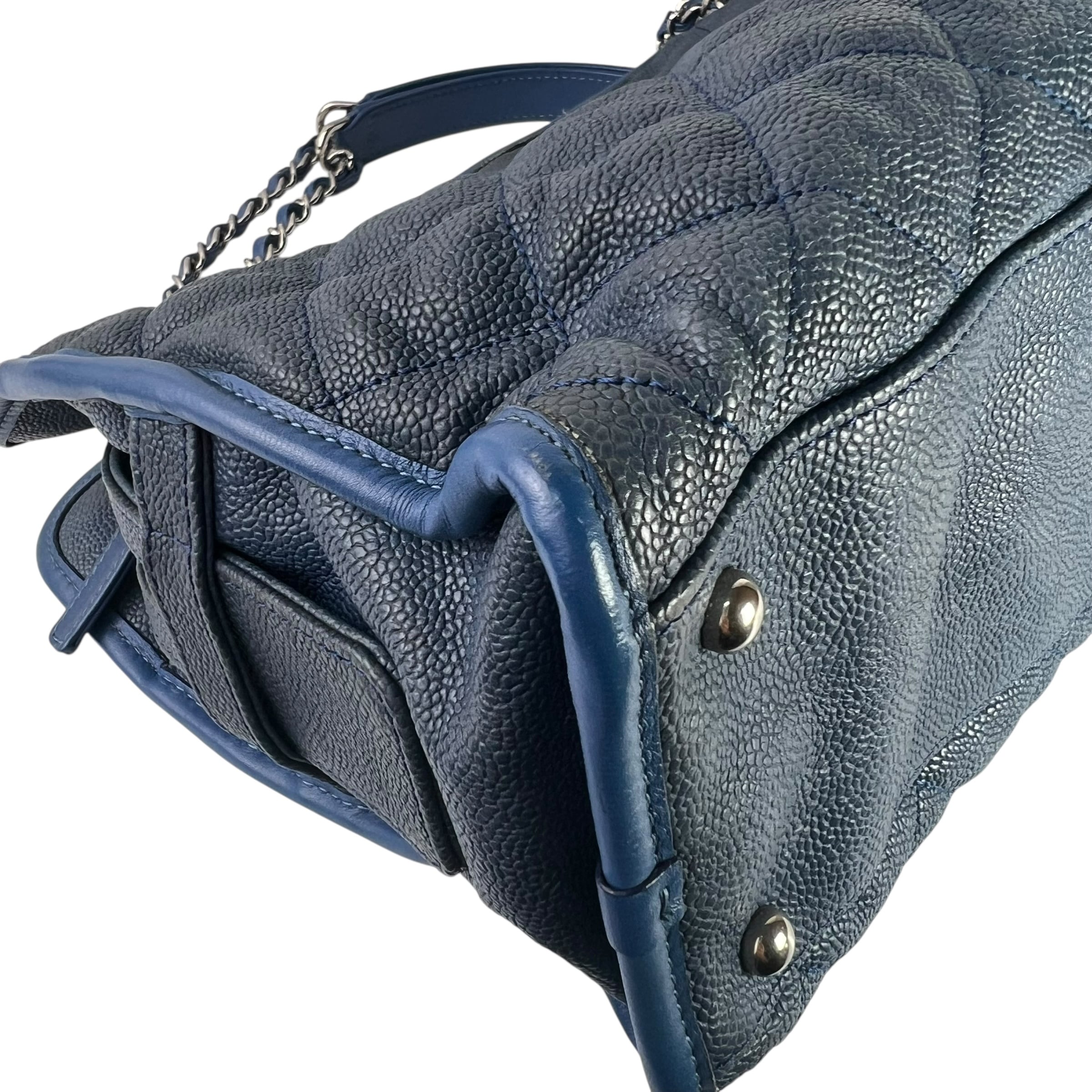 美品 CHANEL シャネル ココマーク キャビアスキン トートバッグ ブルー A-8073