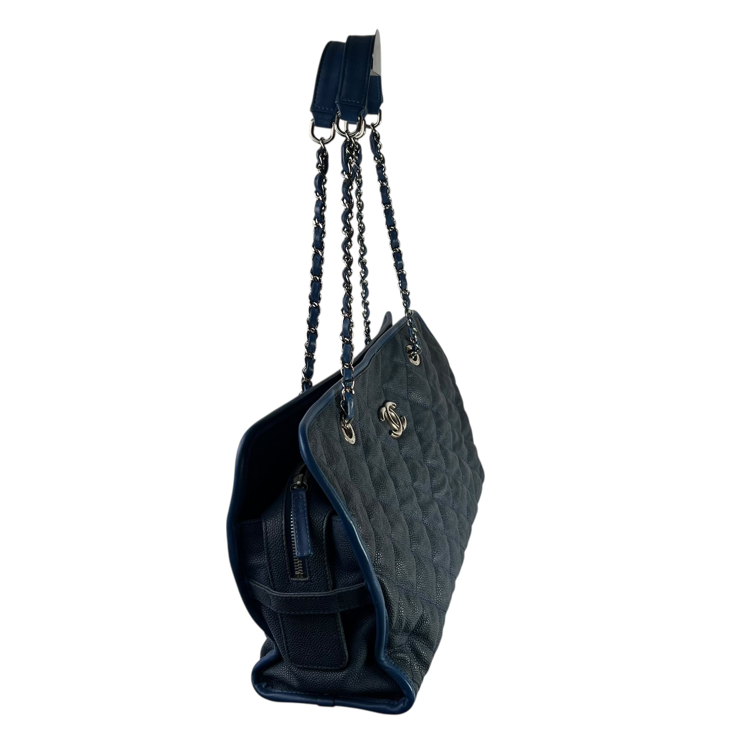CHANEL シャネル ココマーク キャビアスキン トートバッグ ブルー A-8073