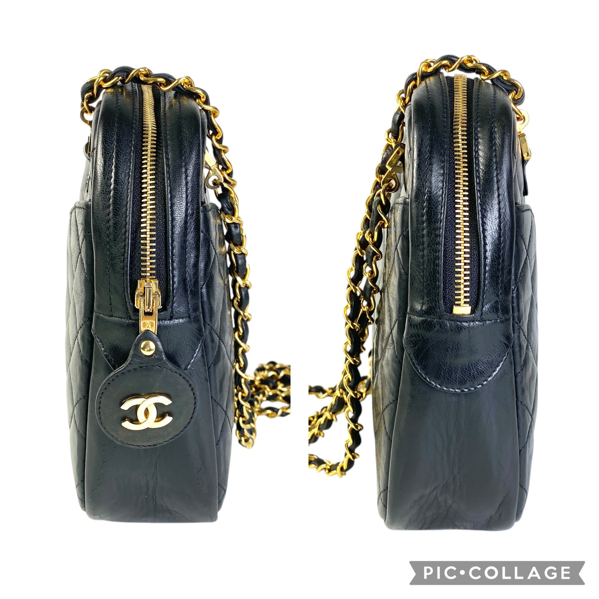 美品 CHANEL シャネル マトラッセ ラムスキン ショルダーバッグ ブラック A-7195