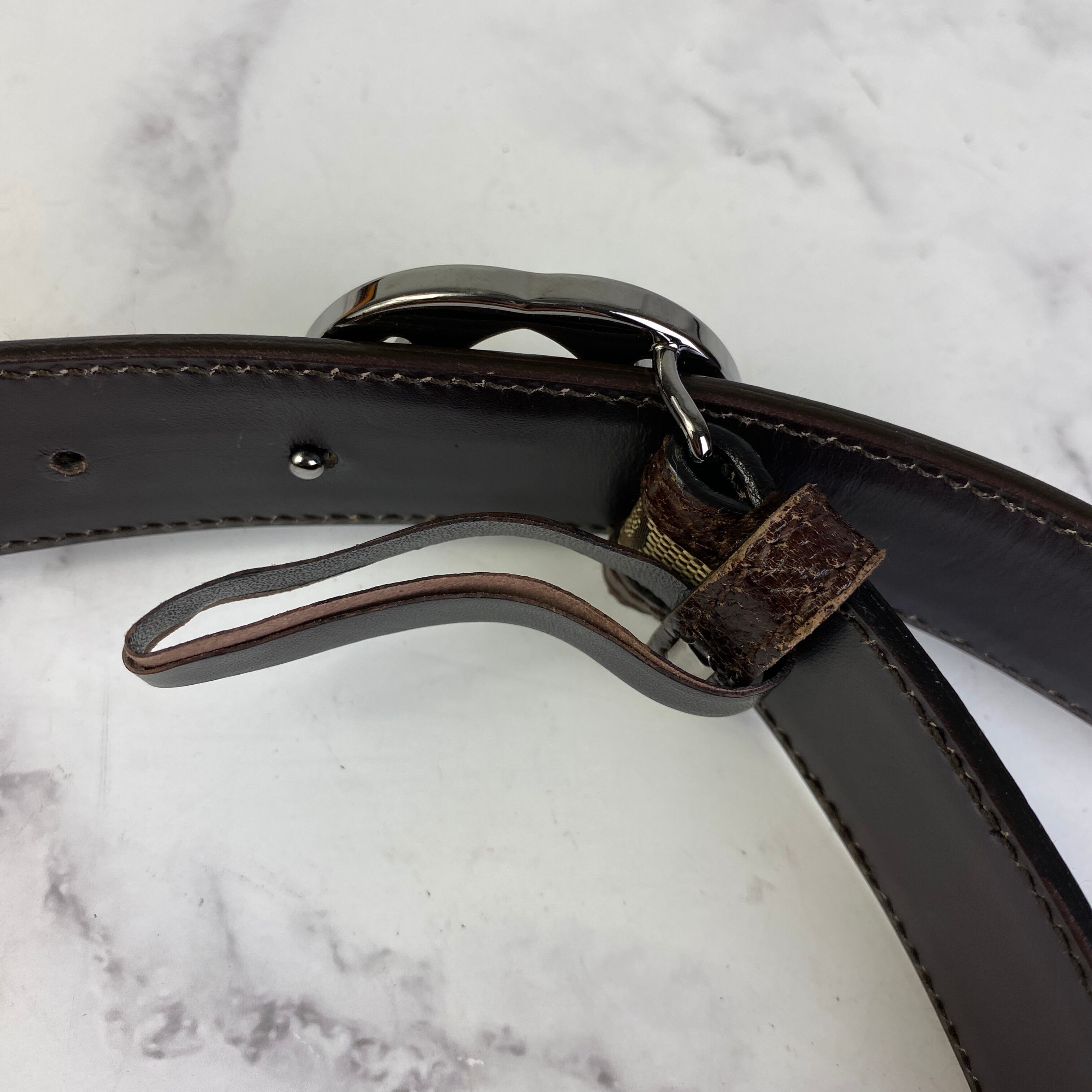 良品 GUCCI グッチ インターロッキングG GGキャンバス キャンバス×レザー ベルト ベージュ A-7205