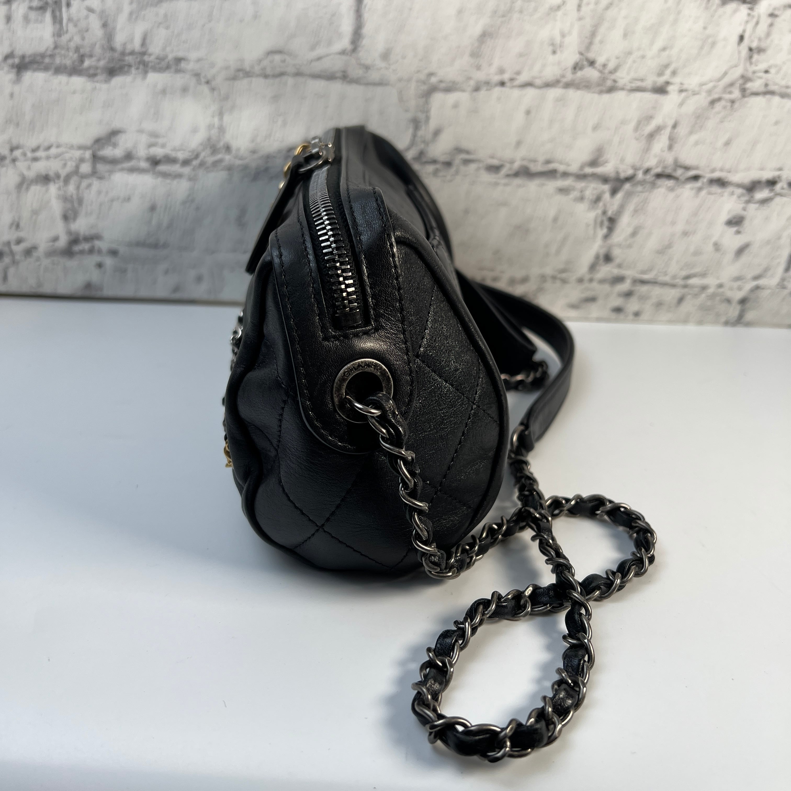 美品 CHANEL シャネル ココマーク ロゴ ラムスキン ショルダーバッグ ブラック A-8378
