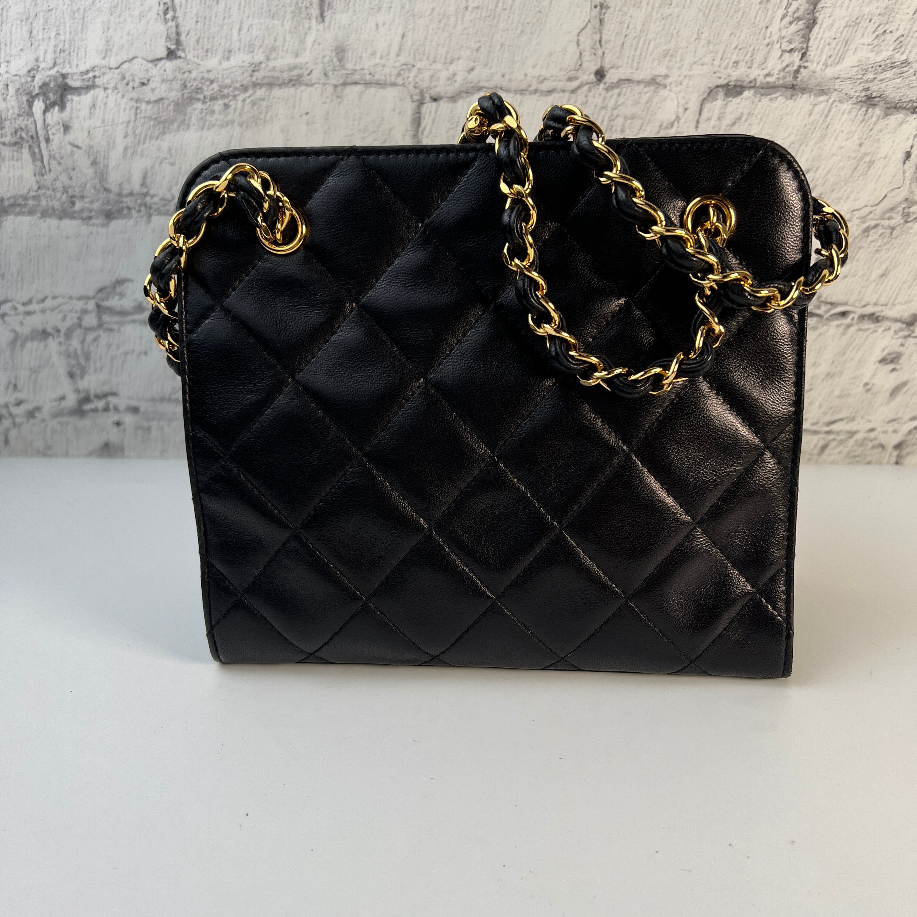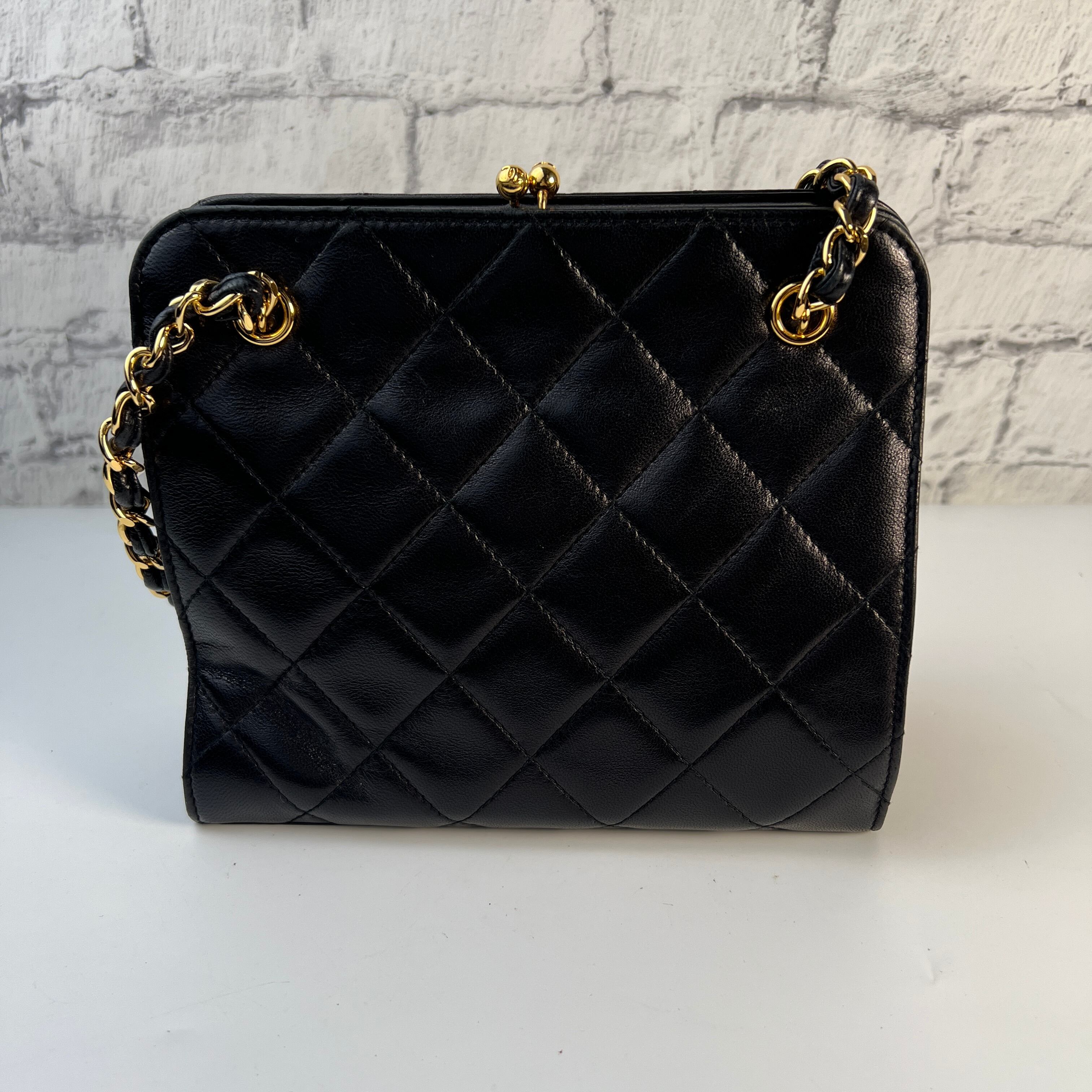 美品 CHANEL シャネル マトラッセ がま口 ラムスキン ショルダーバッグ ブラック A-9129