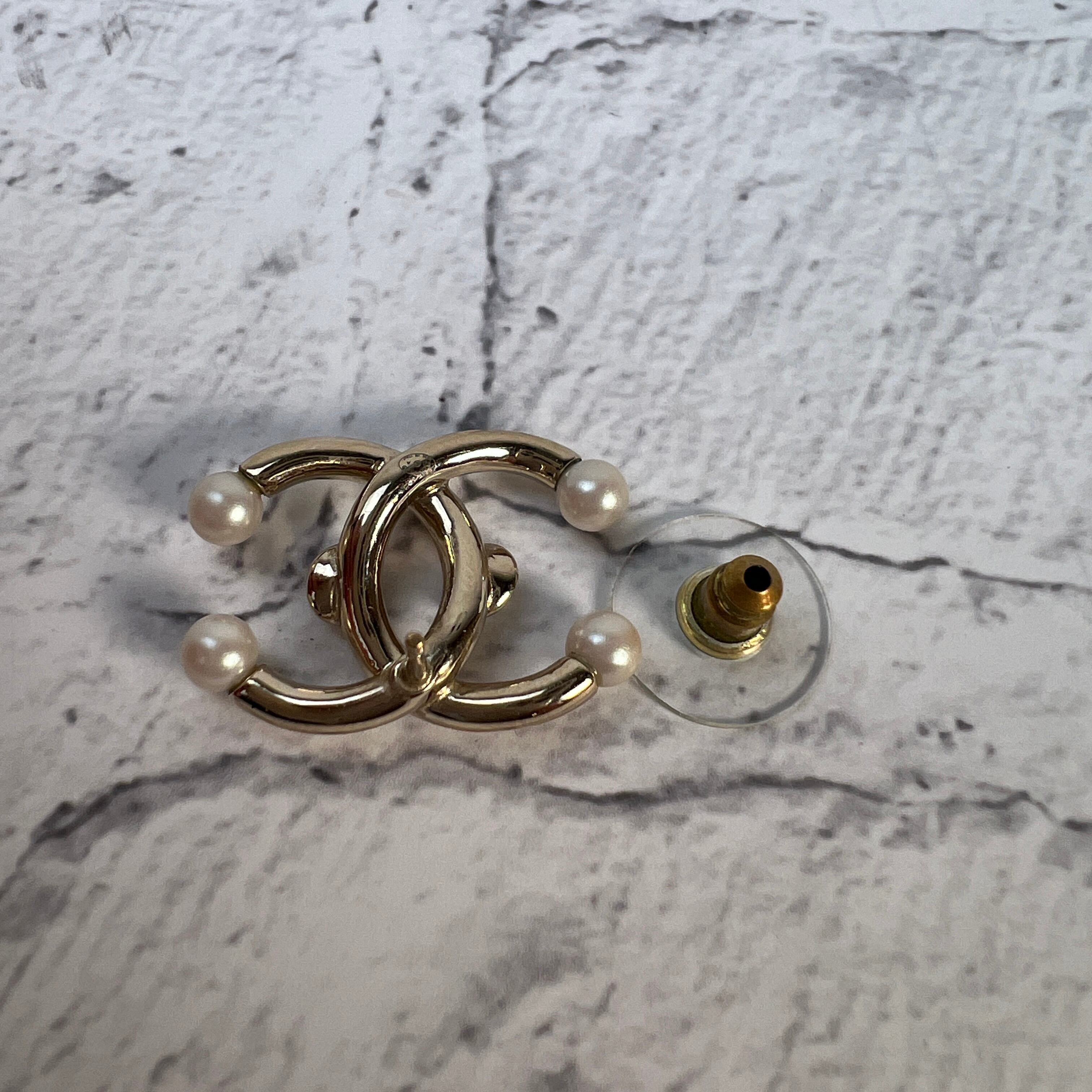 美品 CHANEL シャネル ココマーク B21Aラインストーン×フェイクパール ピアス/イヤリング A-8446