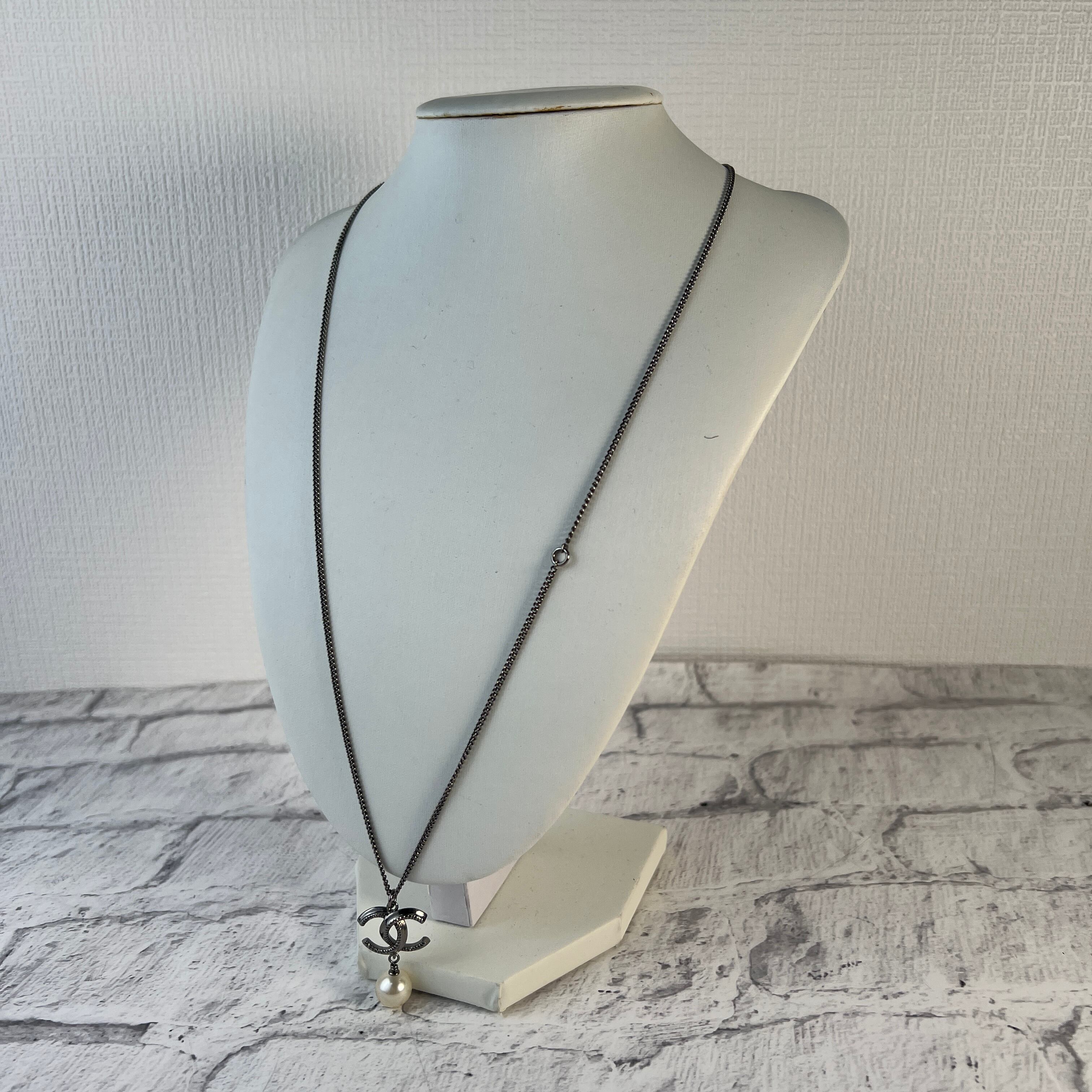 CHANEL シャネル ココマーク フェイクパール ネックレス シルバー A-8459