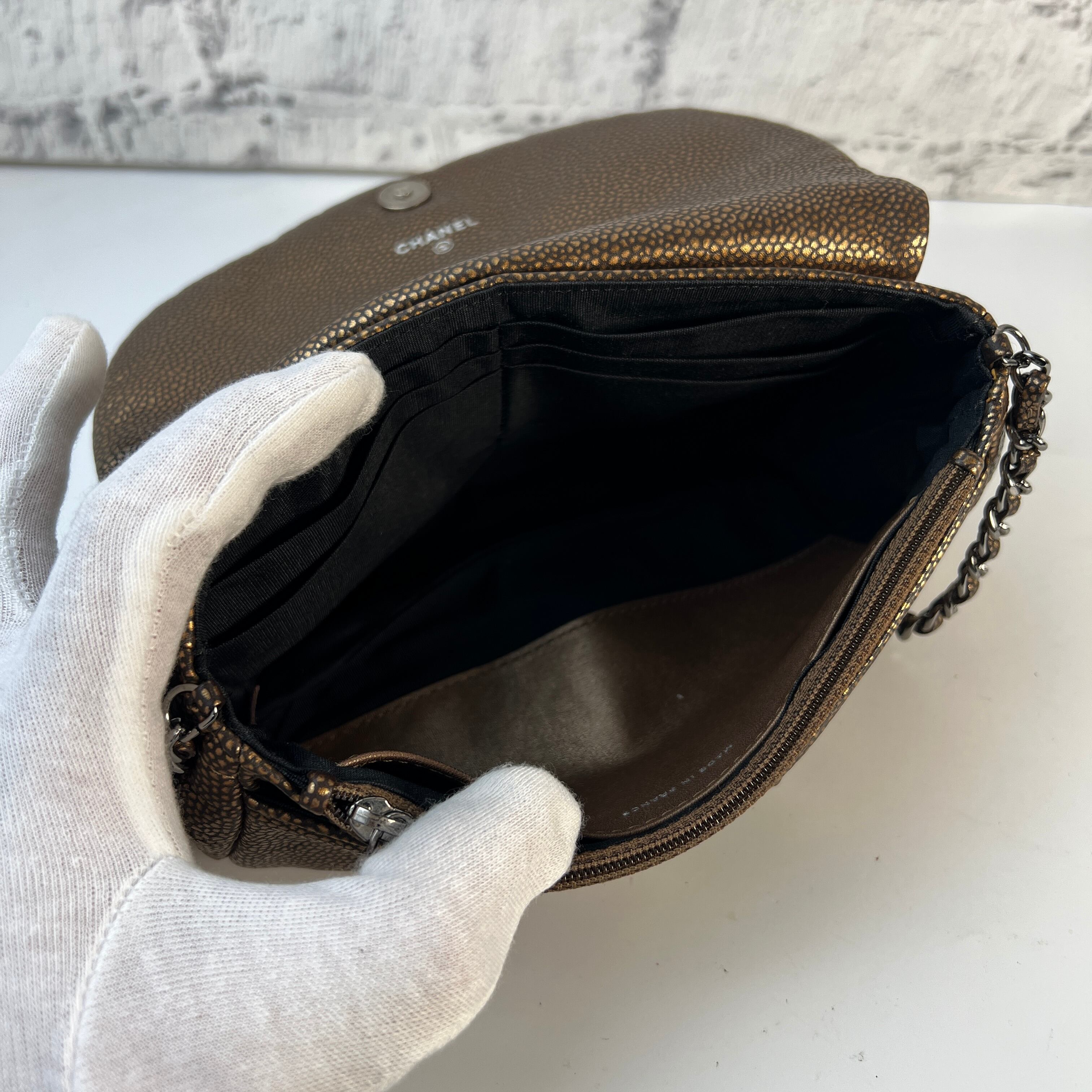 美品 CHANEL シャネル ココマーク ハーフムーン カーフスキン ショルダーバッグ ブラウン A-8861