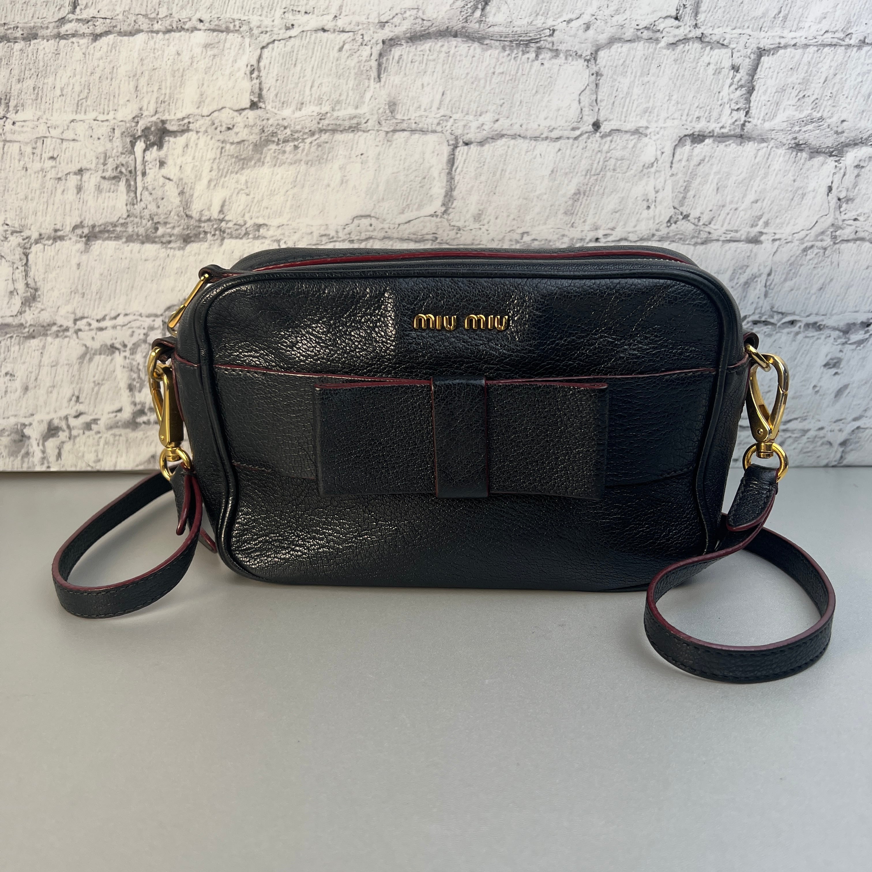 美品 リボン MIU MIUミュウミュウ レザー ショルダーバッグ ブラック A-10147
