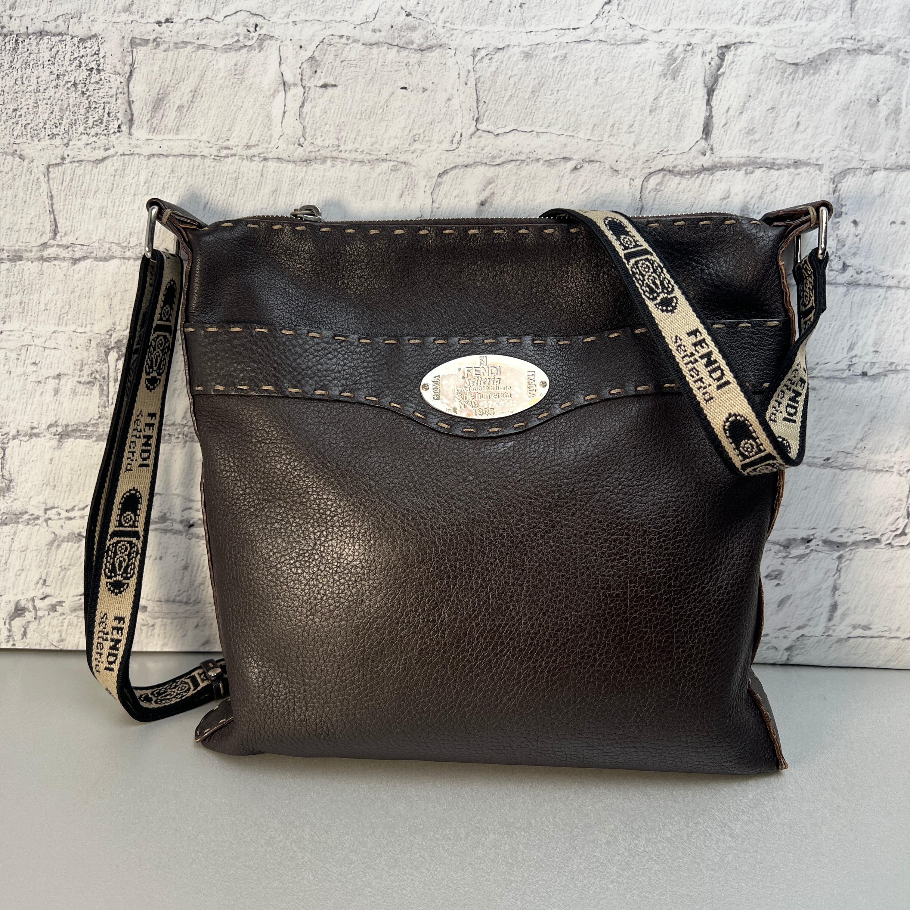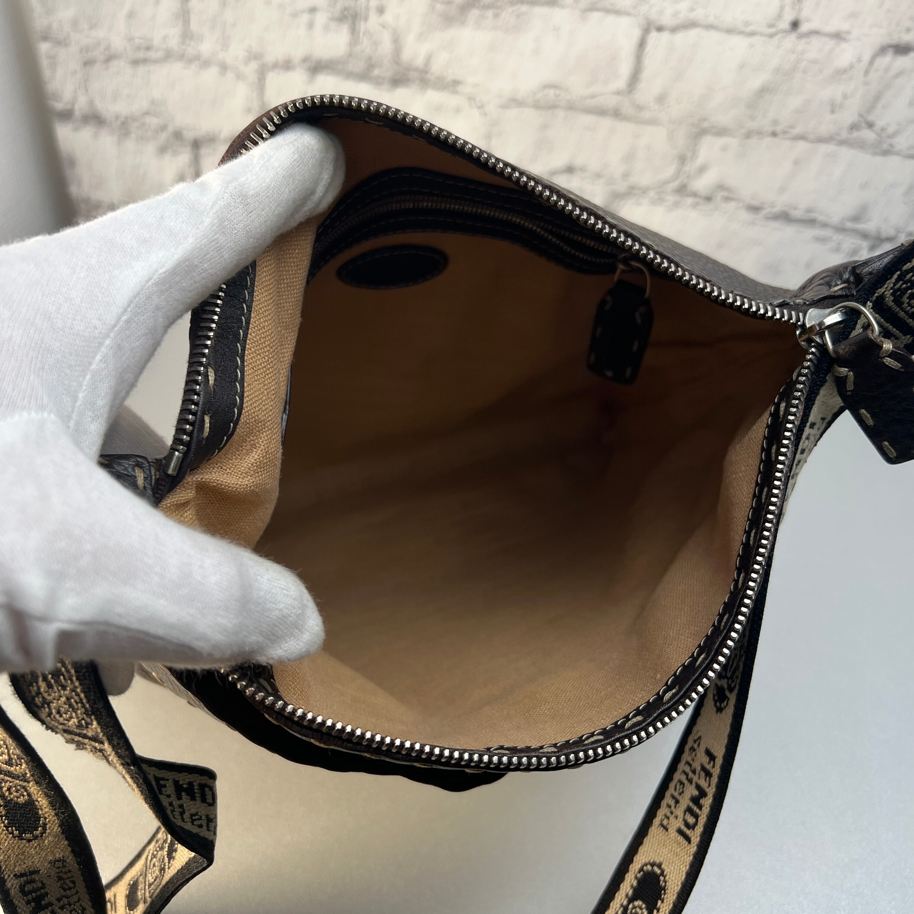 FENDI フェンディ セレリア レザー ショルダーバッグ ブラウン A-10087