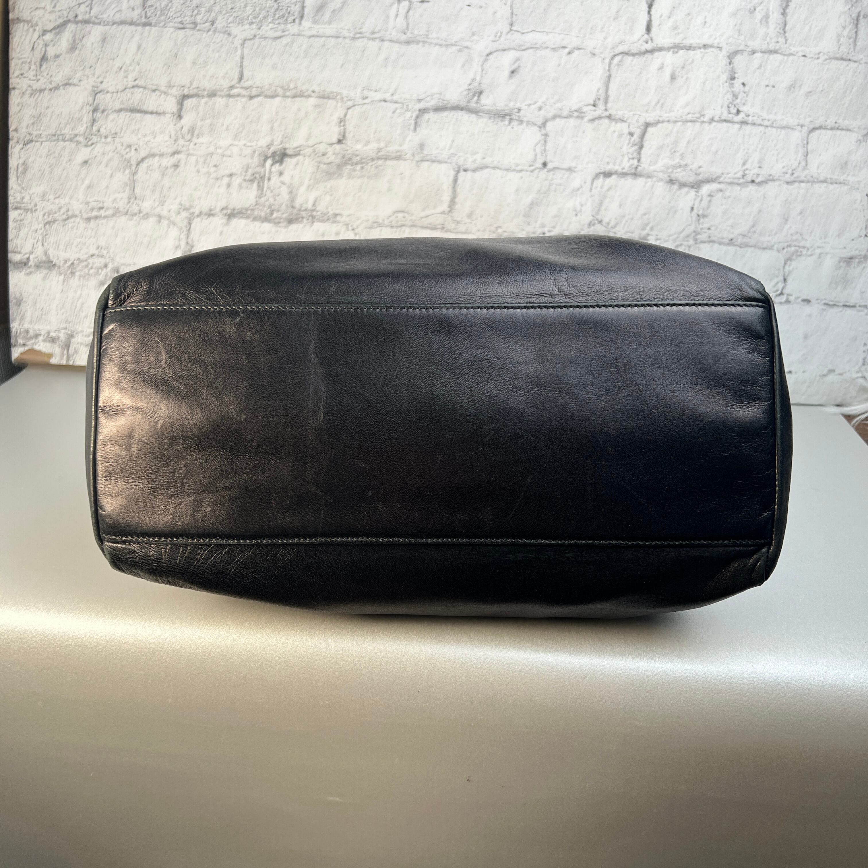 良品 PRADA プラダ 三角ロゴ レザー ハンドバッグ ブラック A-10151