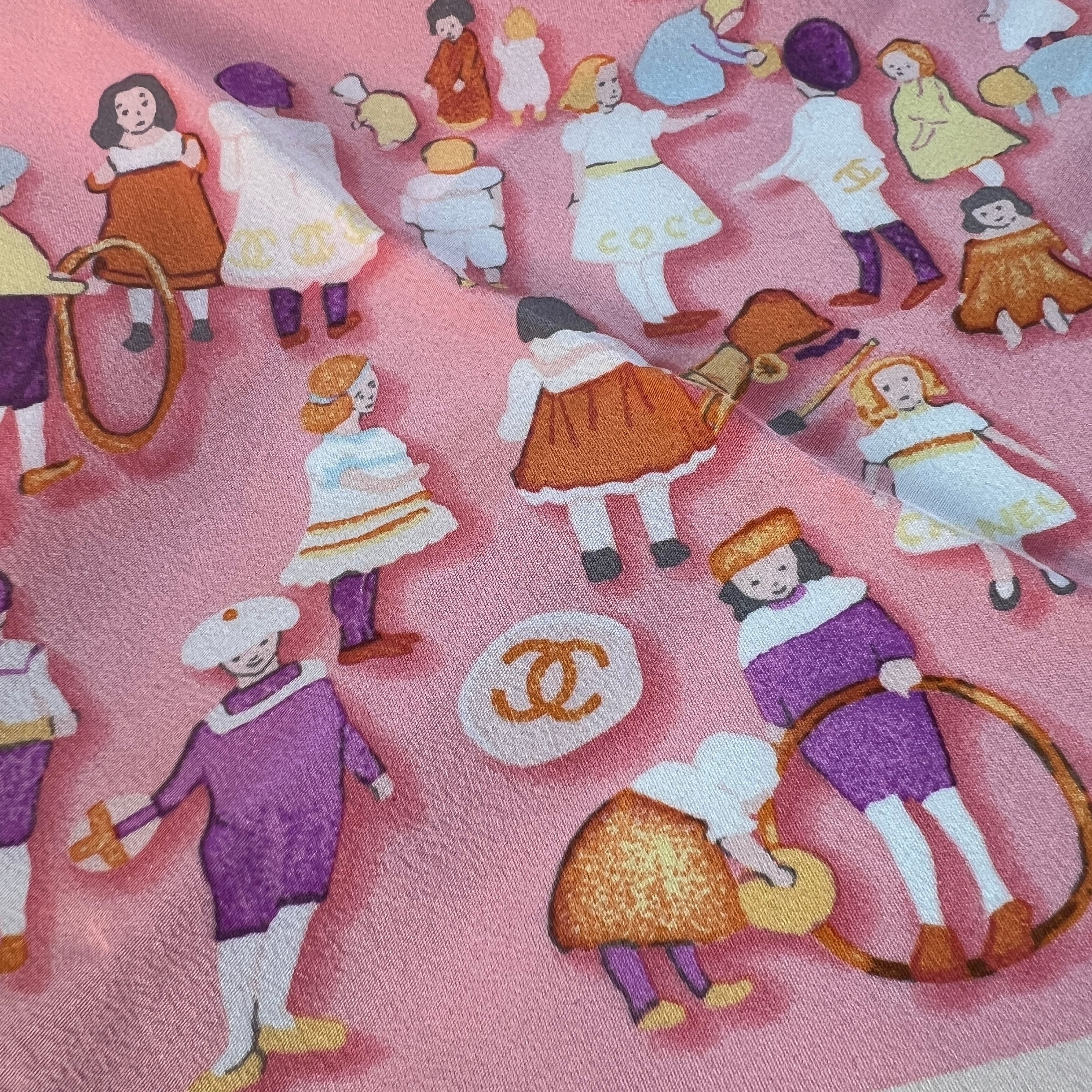 CHANEL シャネル ココマーク タグ付き シルク スカーフ ピンク A-10045