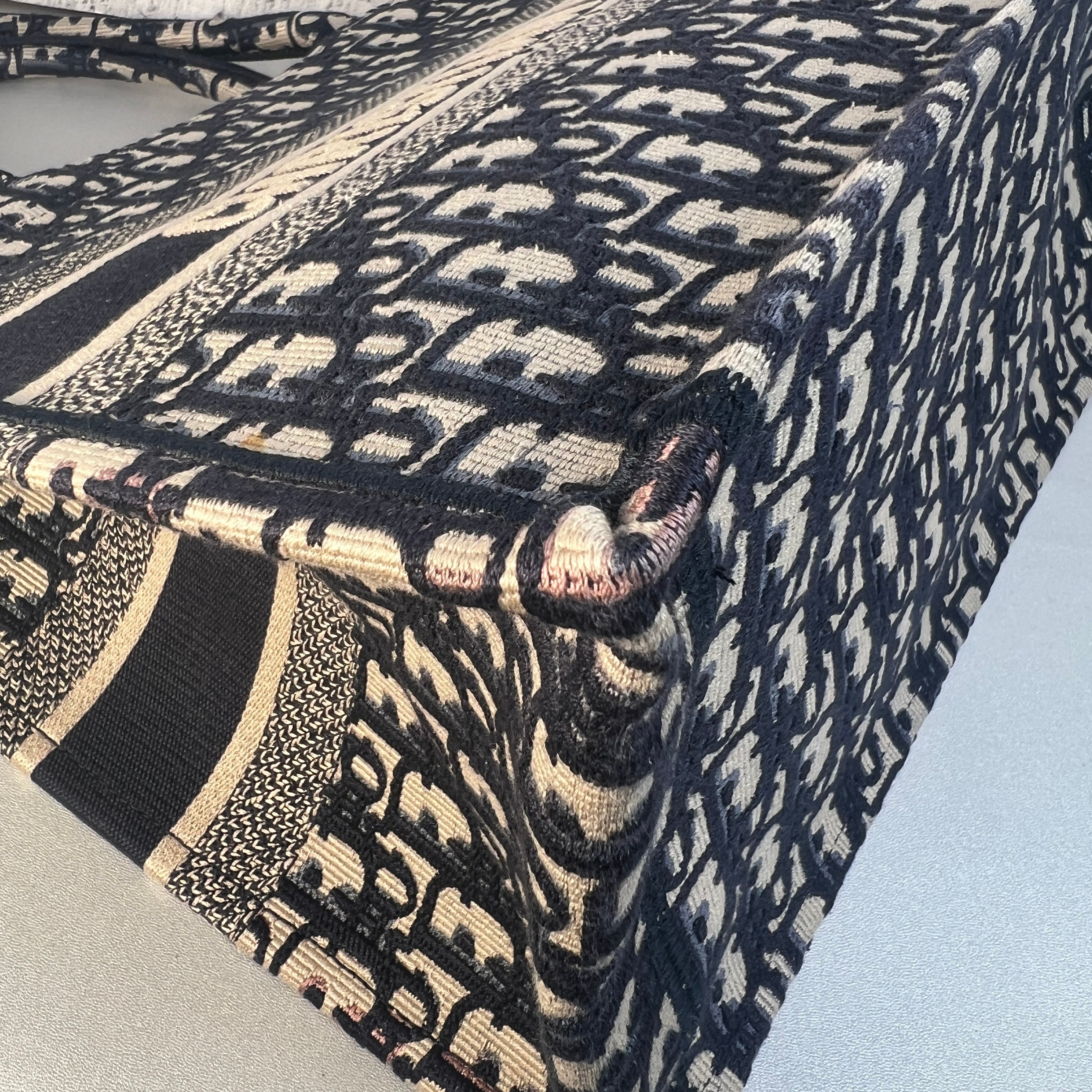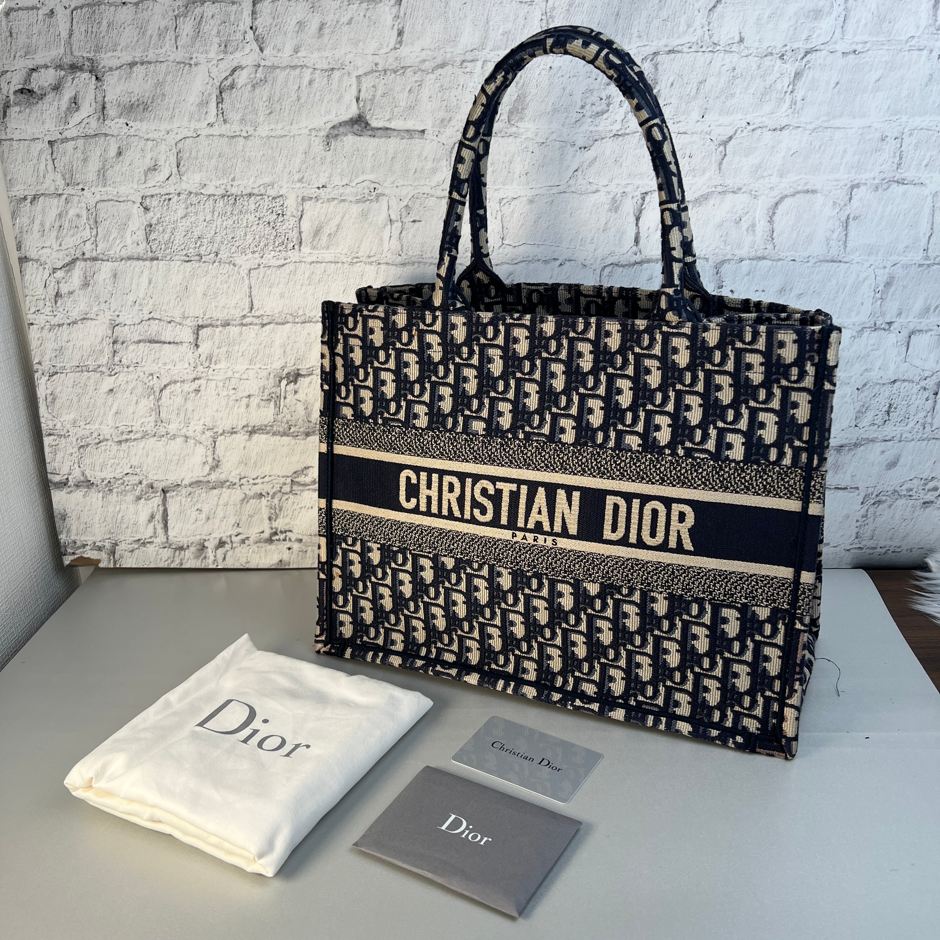 良品 Christian Diorオブリーク ブックトート キャンバス トートバッグ ブルー A-10775