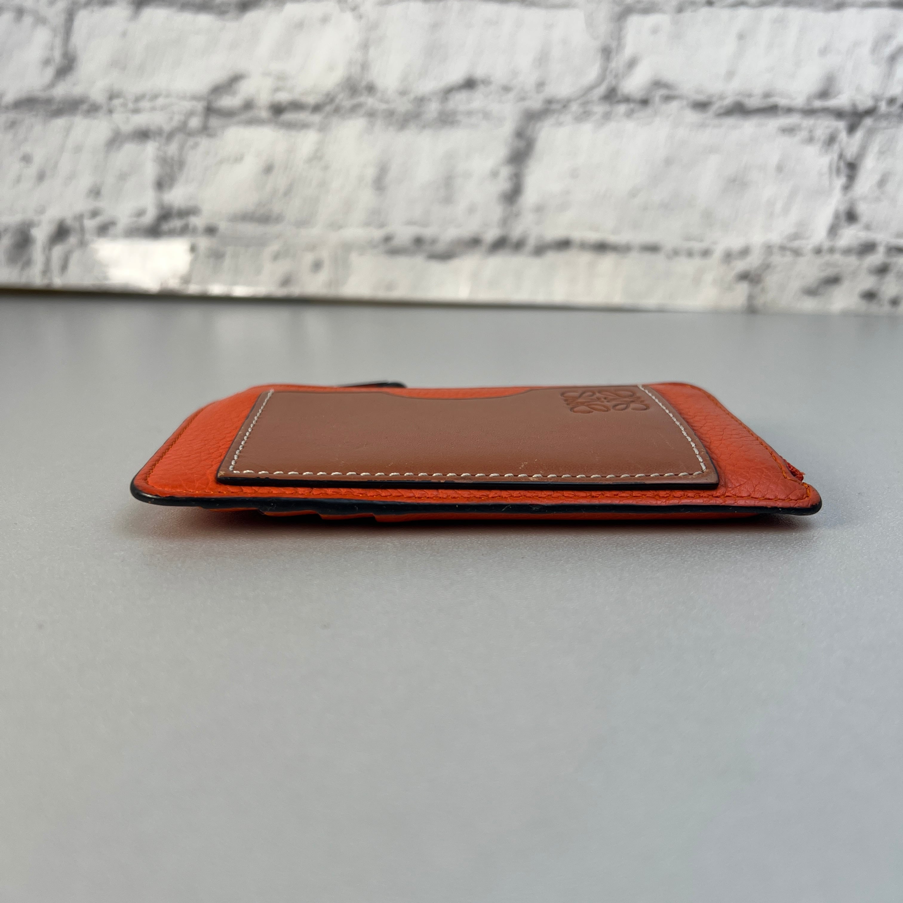 良品 LOEWE アナグラム レザー カードケース オレンジ A-10297