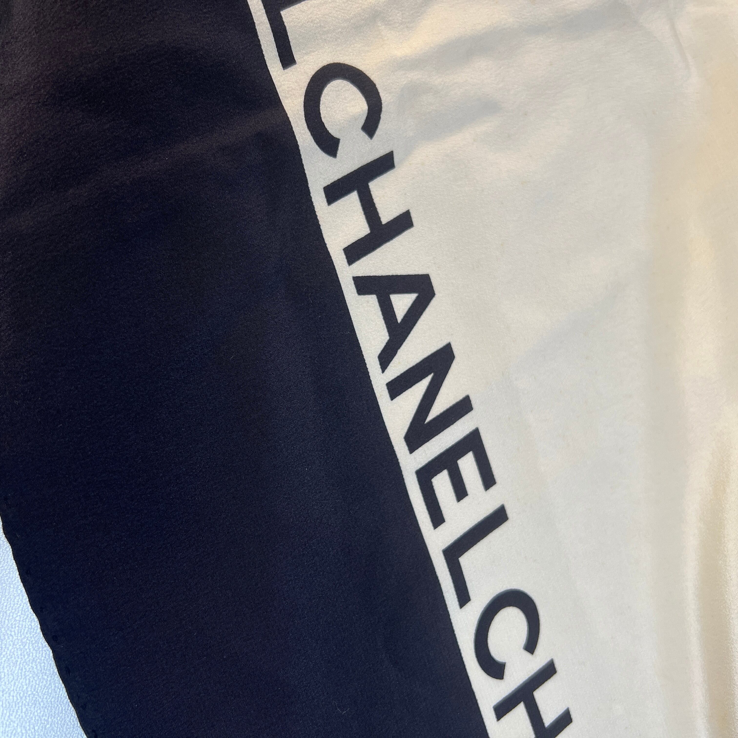 良品 CHANEL シャネル ココマーク タグ付き シルク スカーフ バイカラー A-9238