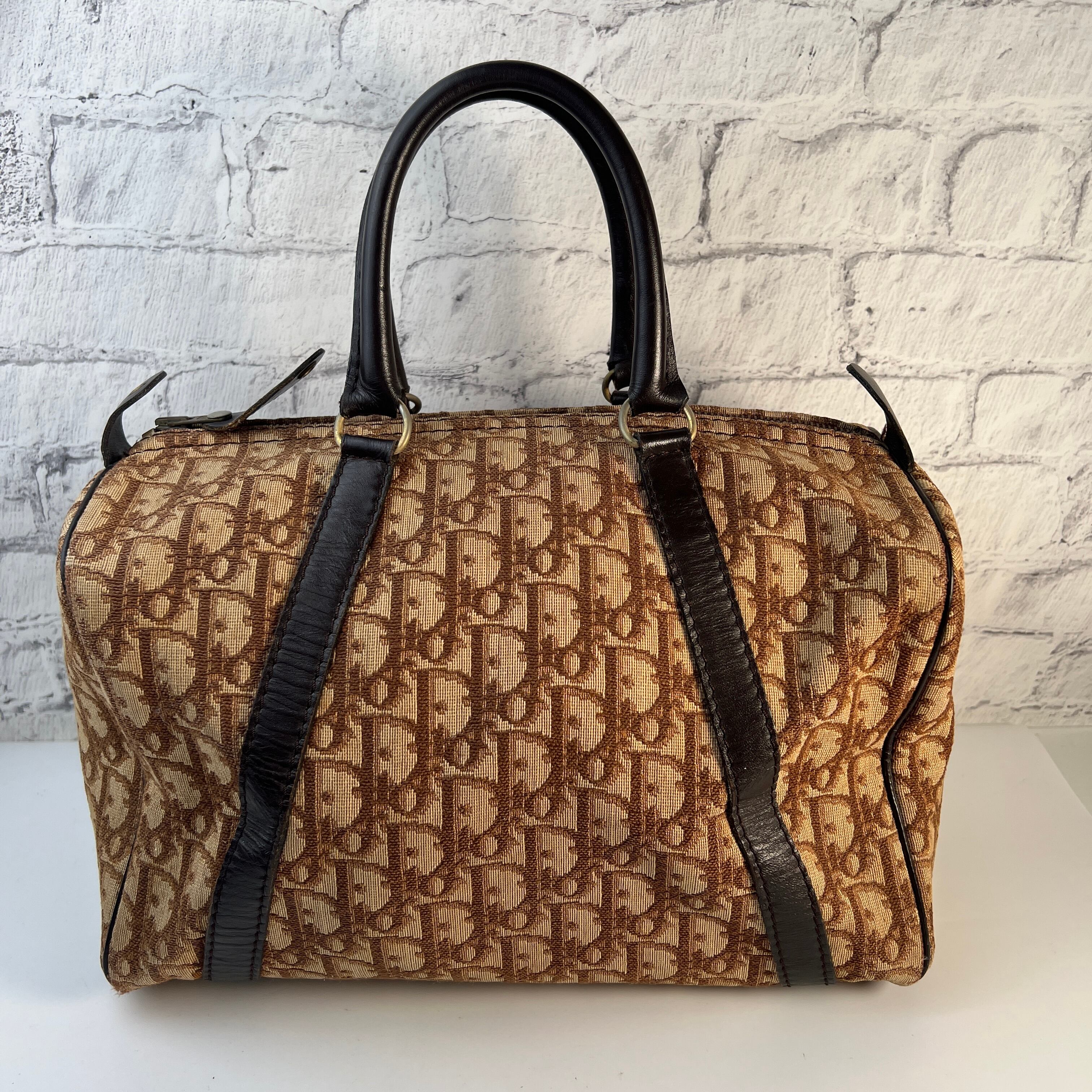 美品 Diorトロッター キャンバス ハンドバッグ ブラウン A-8926