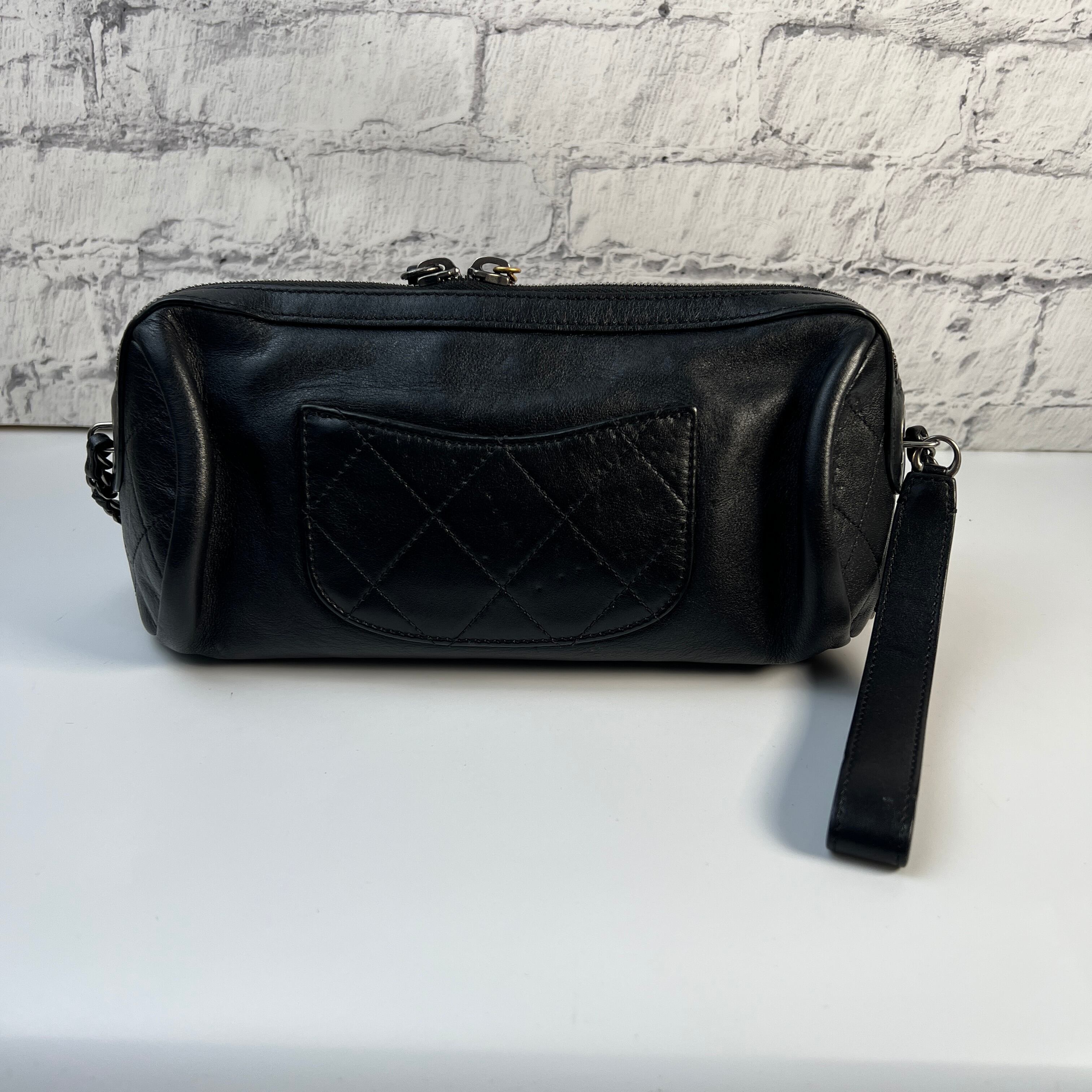 美品 CHANEL シャネル ココマーク ロゴ ラムスキン ショルダーバッグ ブラック A-8378