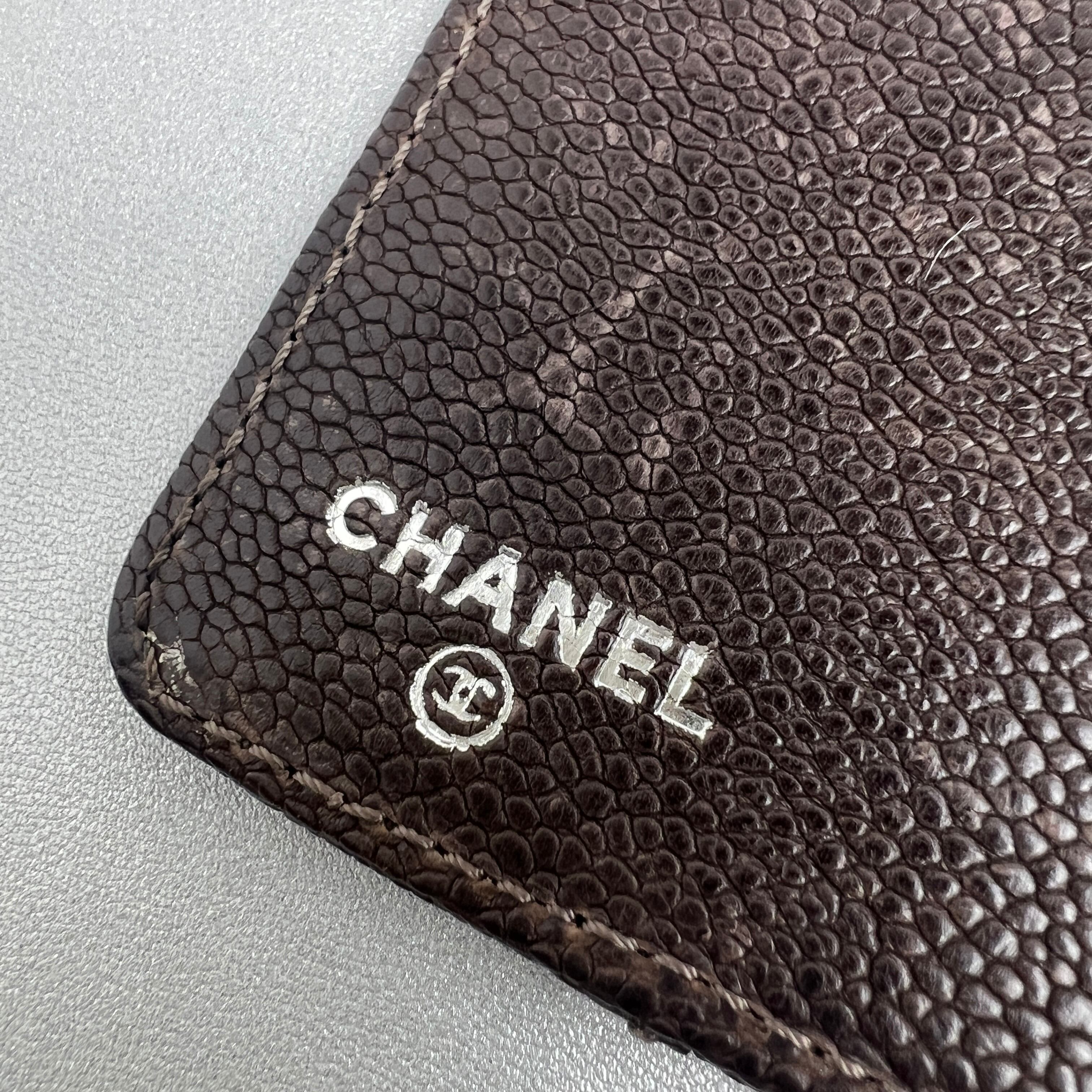 CHANEL シャネル ココマーク ワイルドステッチ キャビアスキン 二つ折り財布 ブラウン A-10263