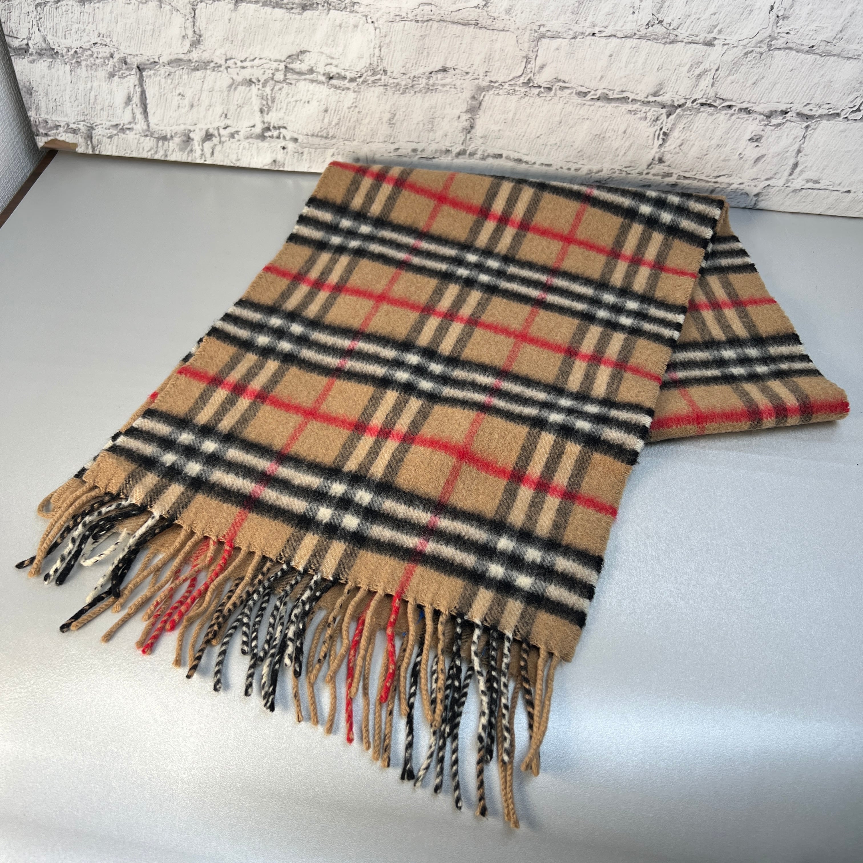良品 BURBERRY バーバリーノバチェック柄 タグ付き カシミヤ ベージュ A-10230