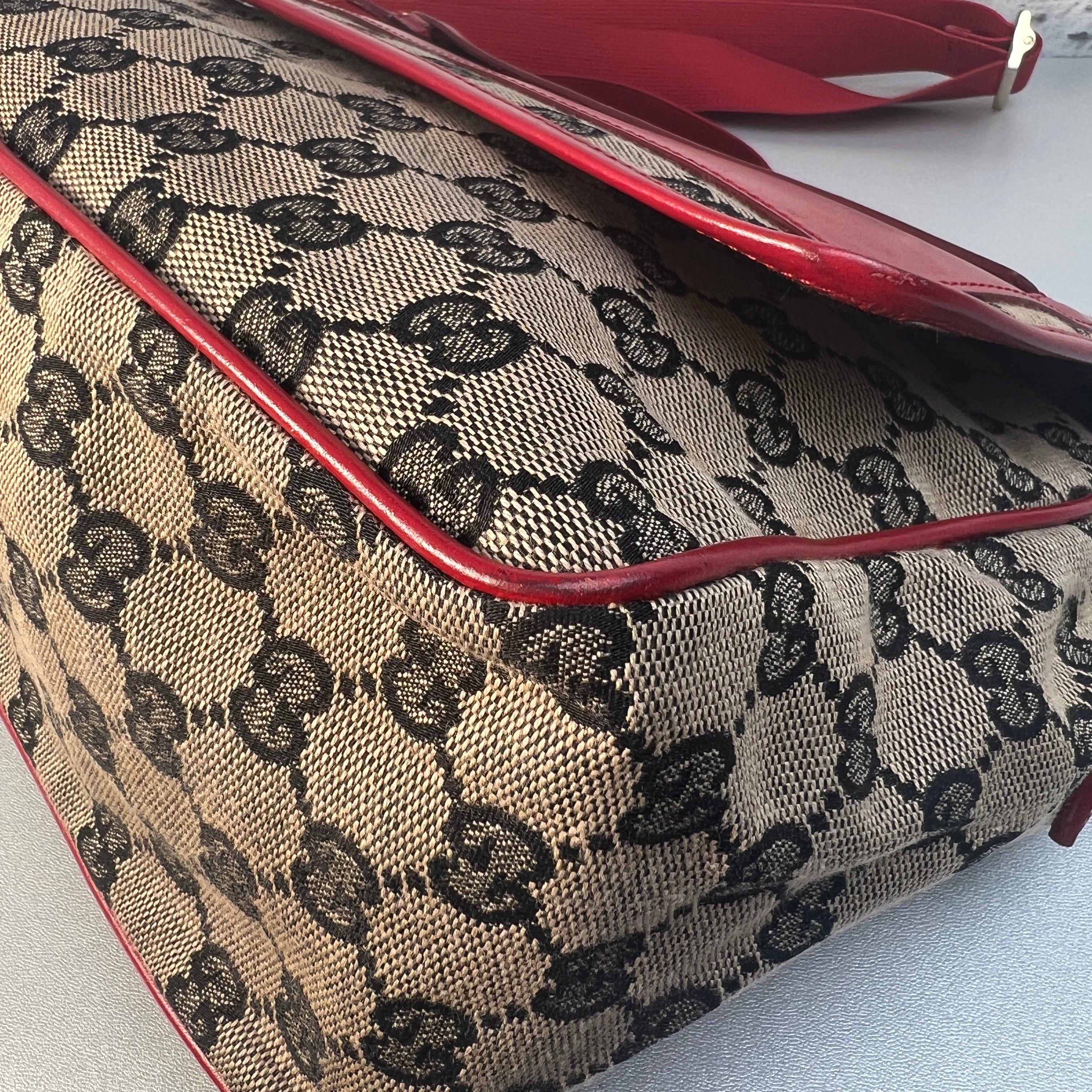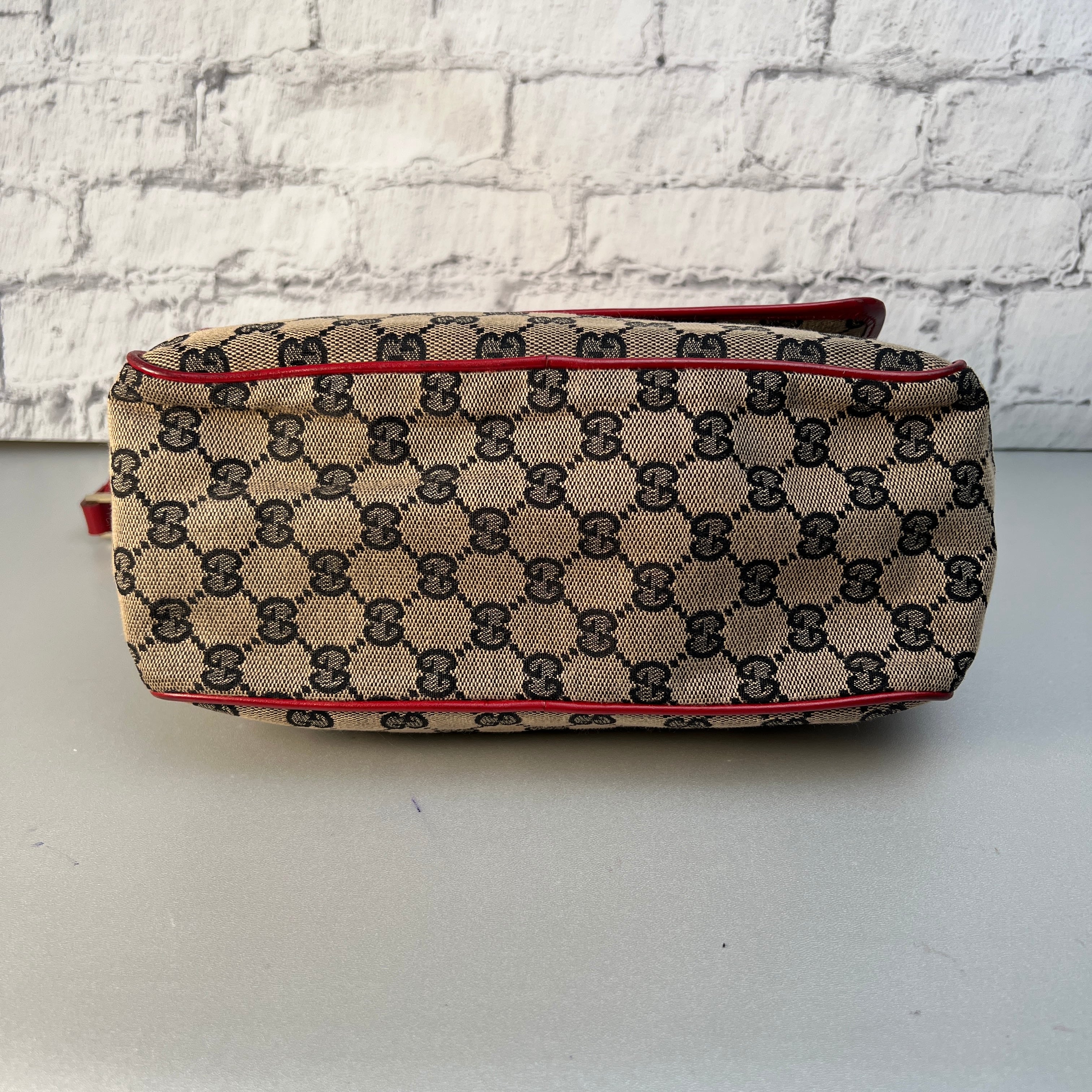 良品 GUCCI グッチ GGキャンバス ショルダーバッグ レッド A-10521