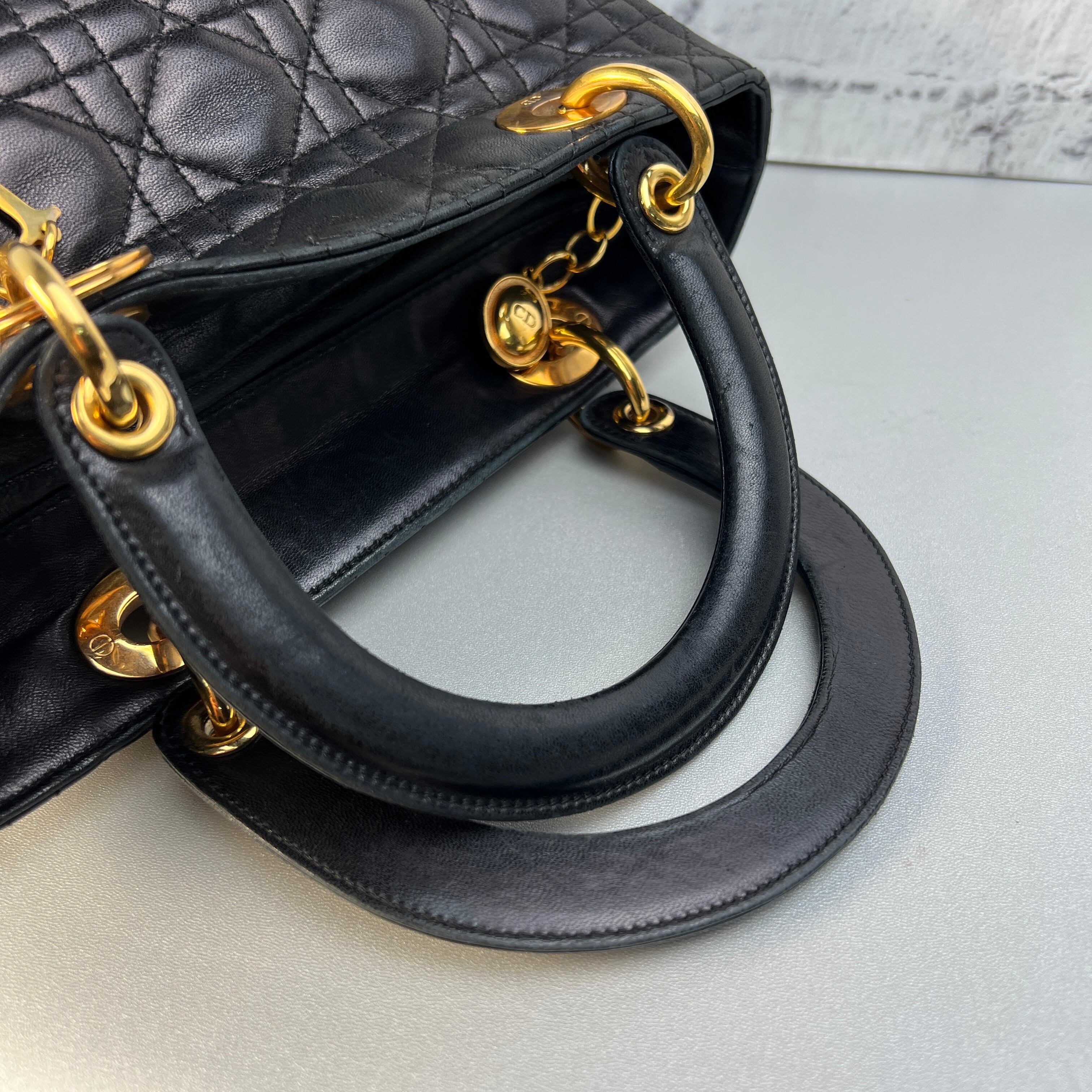 良品 レディディオール ミディアムカナージュ ハンドバッグ ブラック A-9514