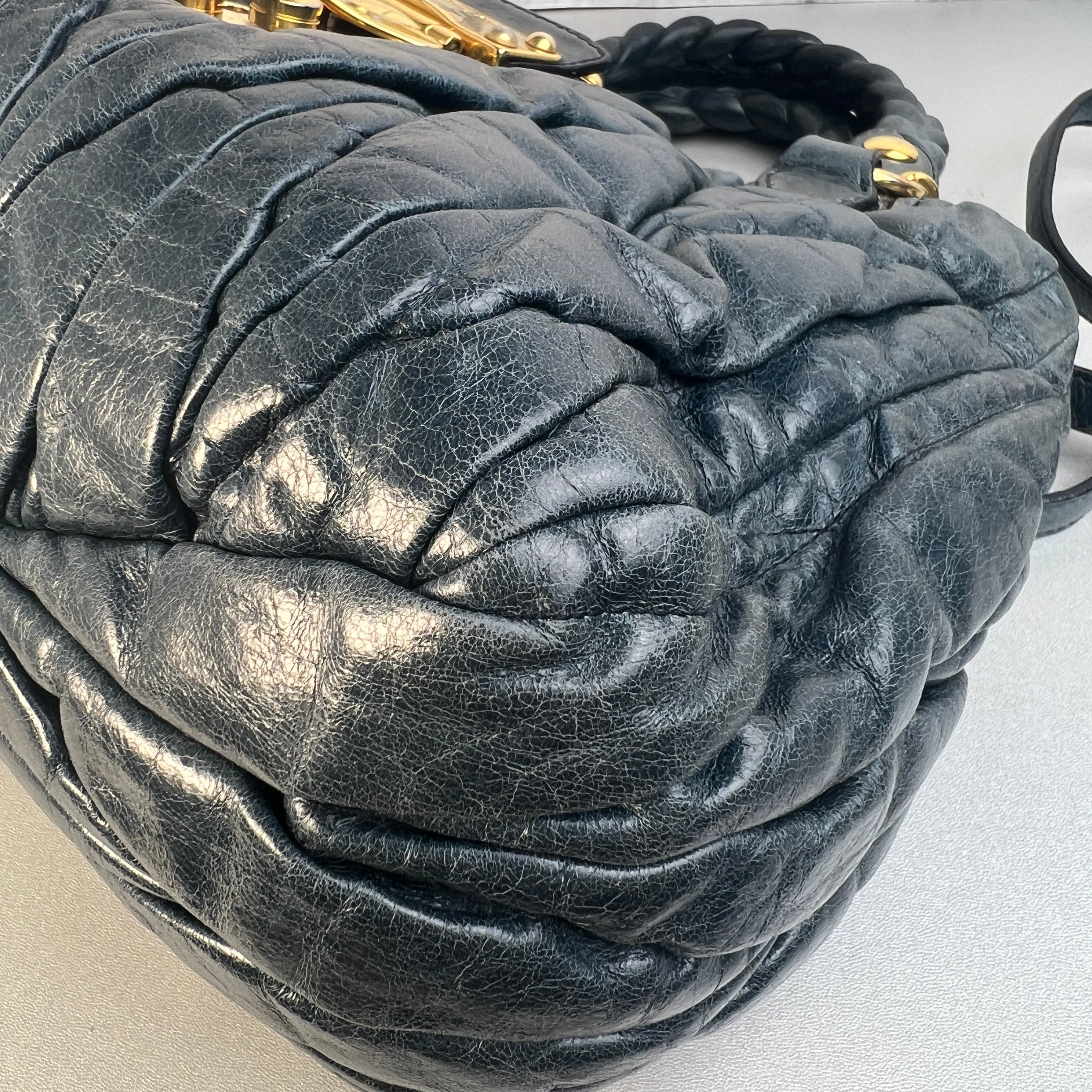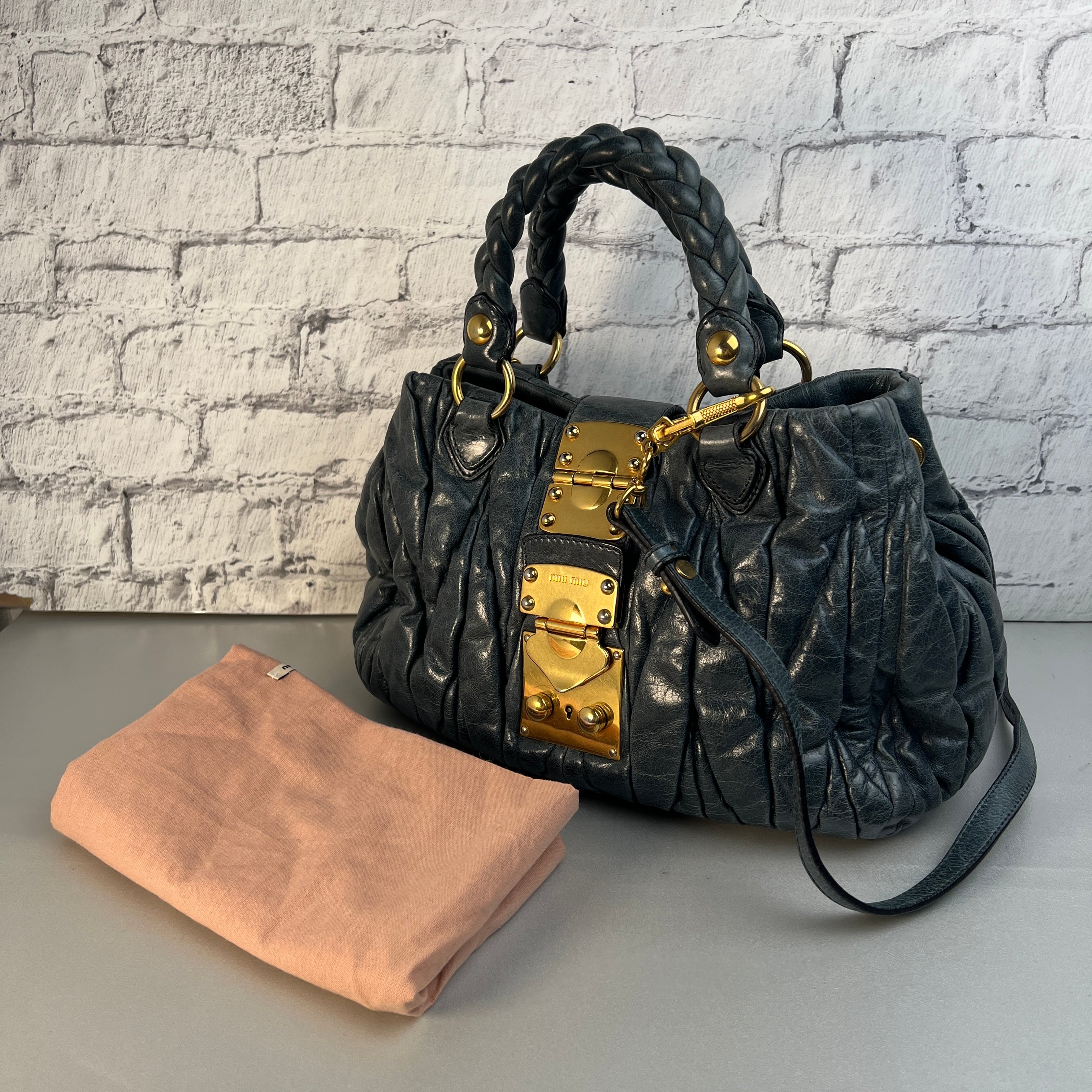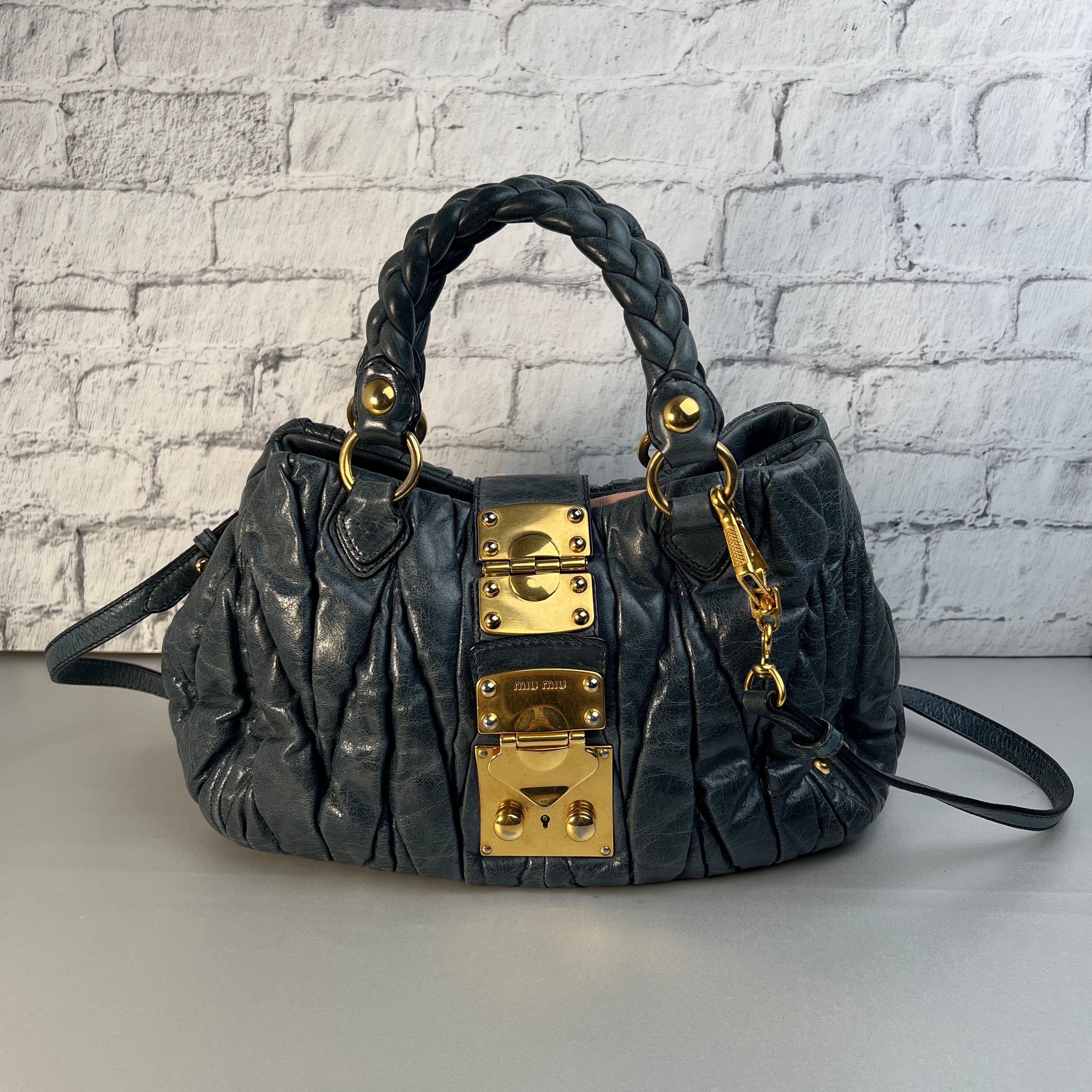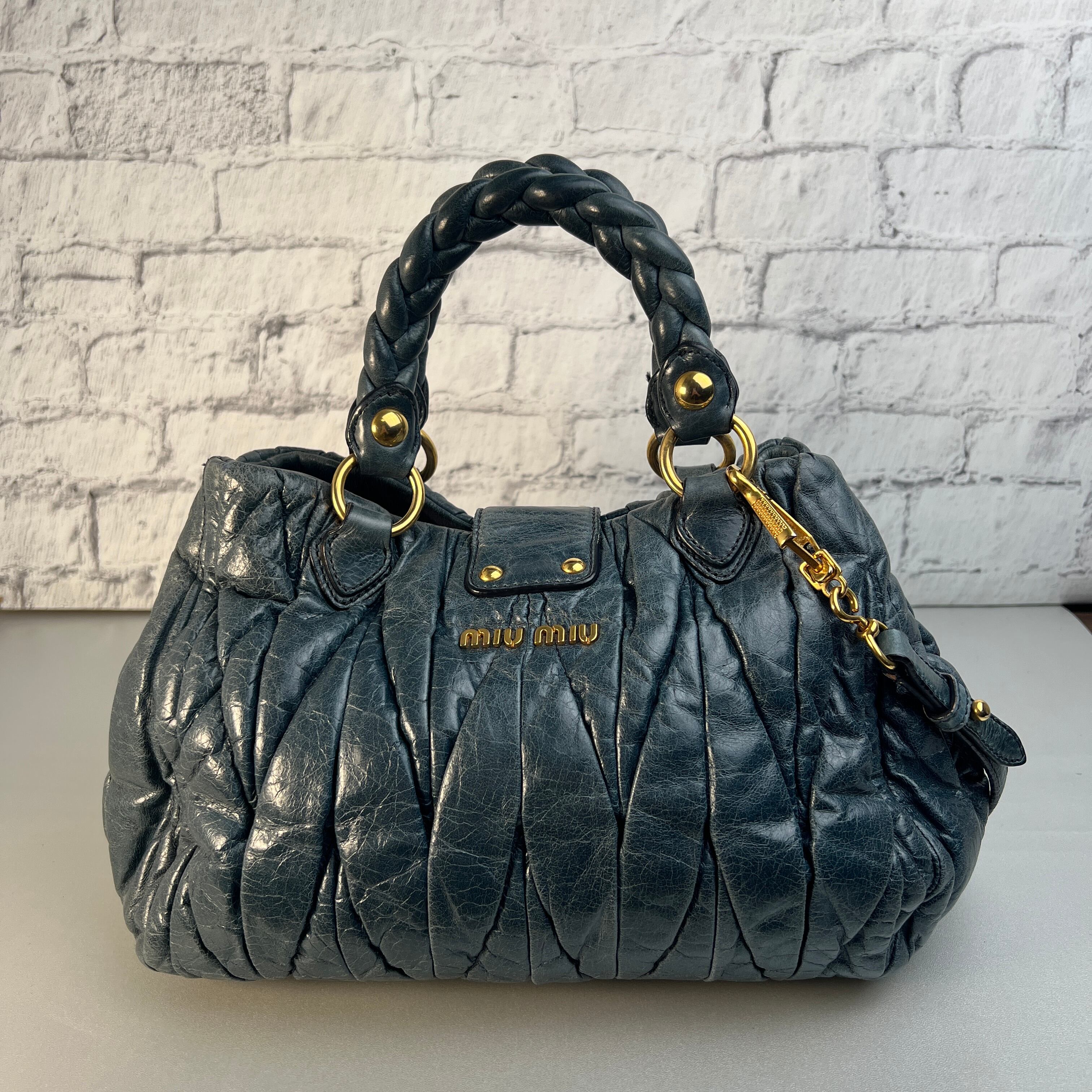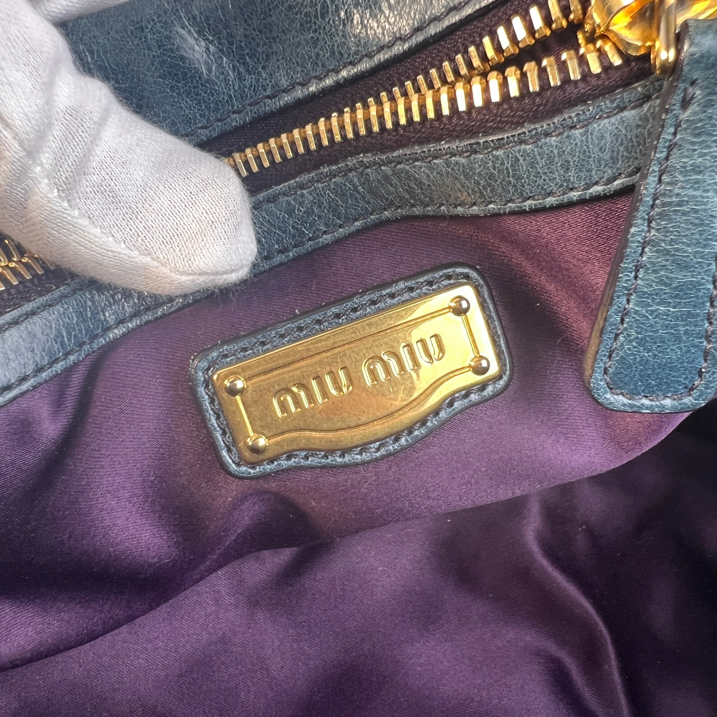 miu miu 2WAY レザー ハンドバッグ ブルー A-10727