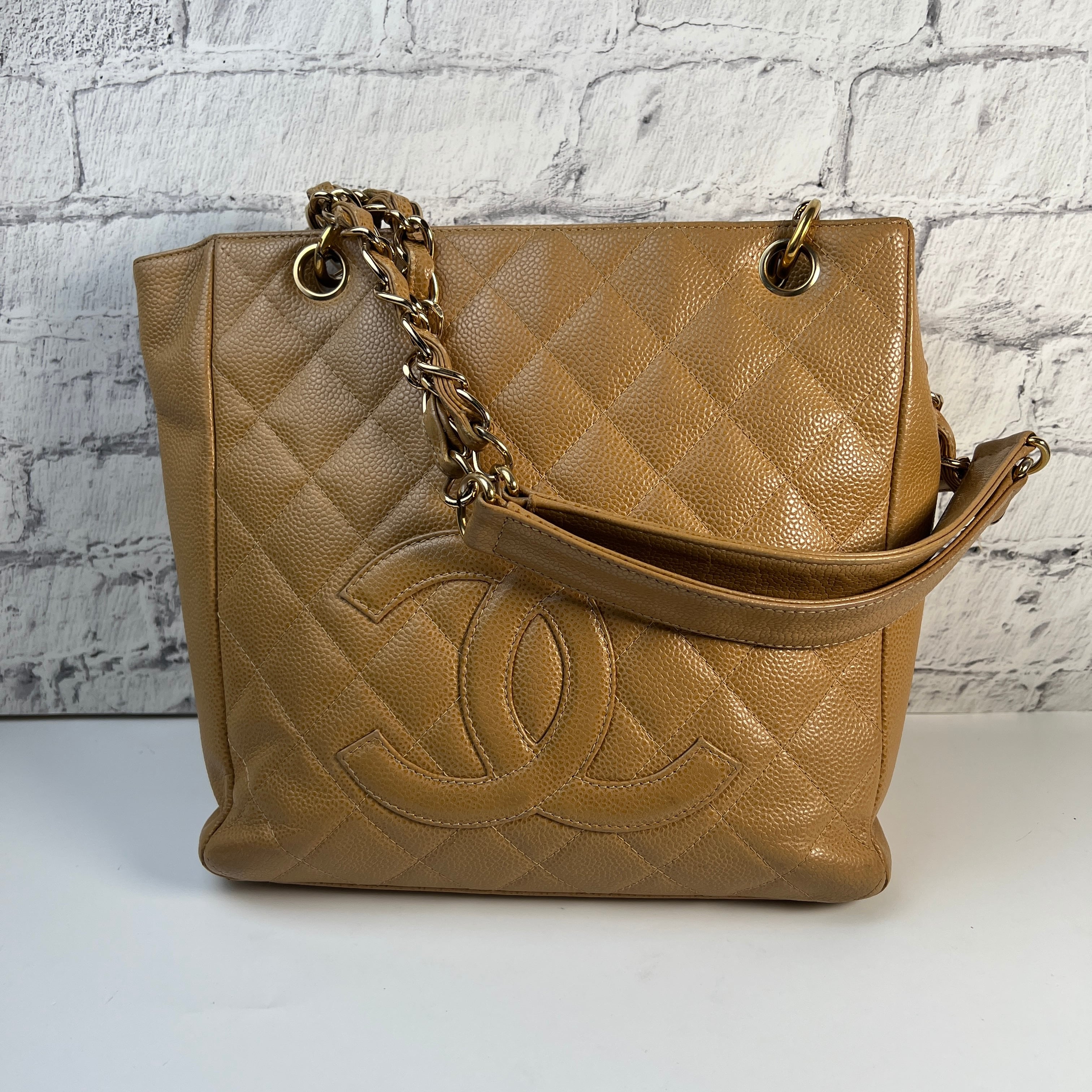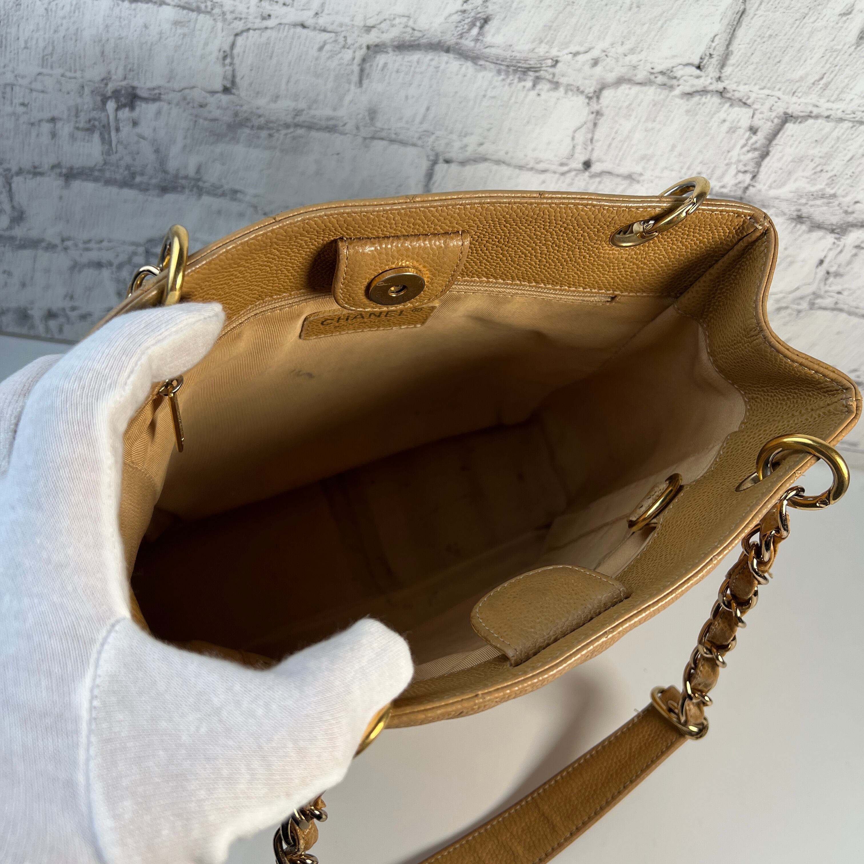 良品 CHANEL シャネル ココマーク キャビアスキン ハンドバッグ ベージュ A-8513