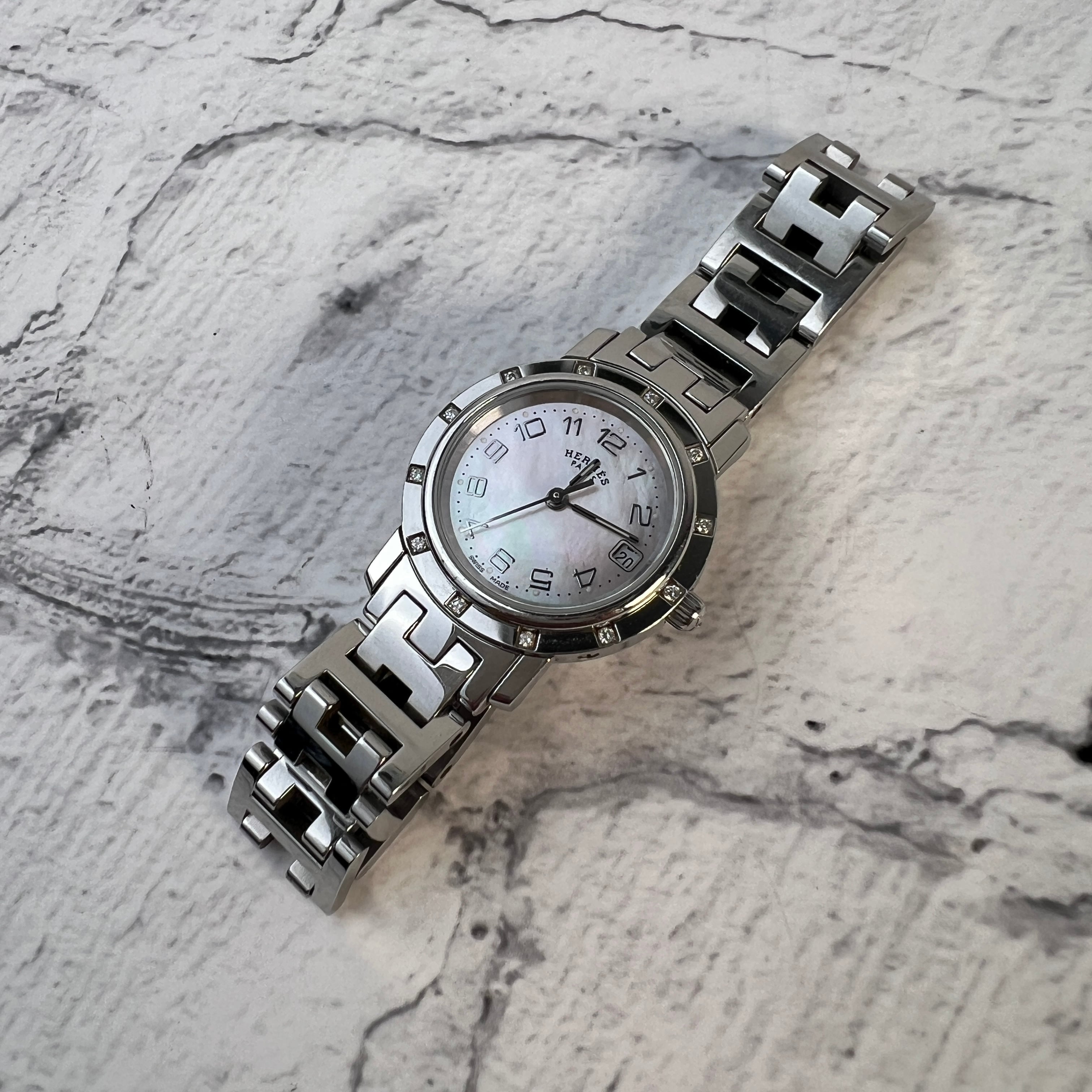 【最終処分SALE】HERMES エルメス クリッパーナクレPM 12PD 時計 シルバー A-9141