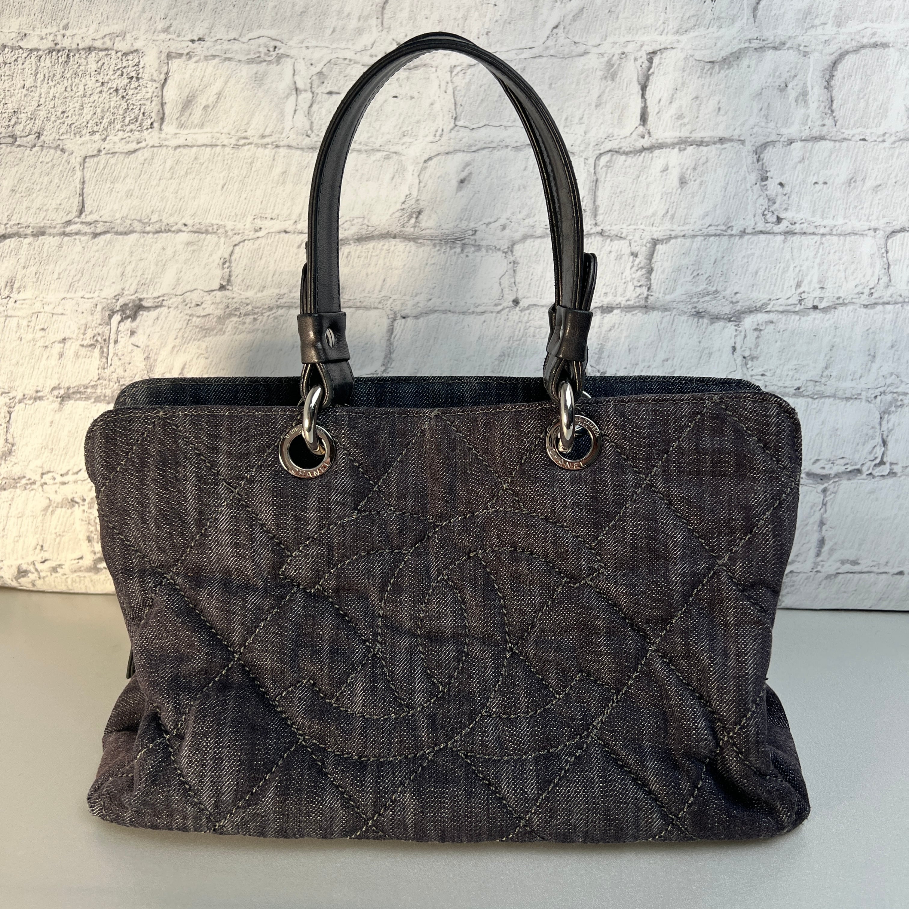 良品 CHANEL シャネル ココマーク デニム トートバッグ ブルー A-11622