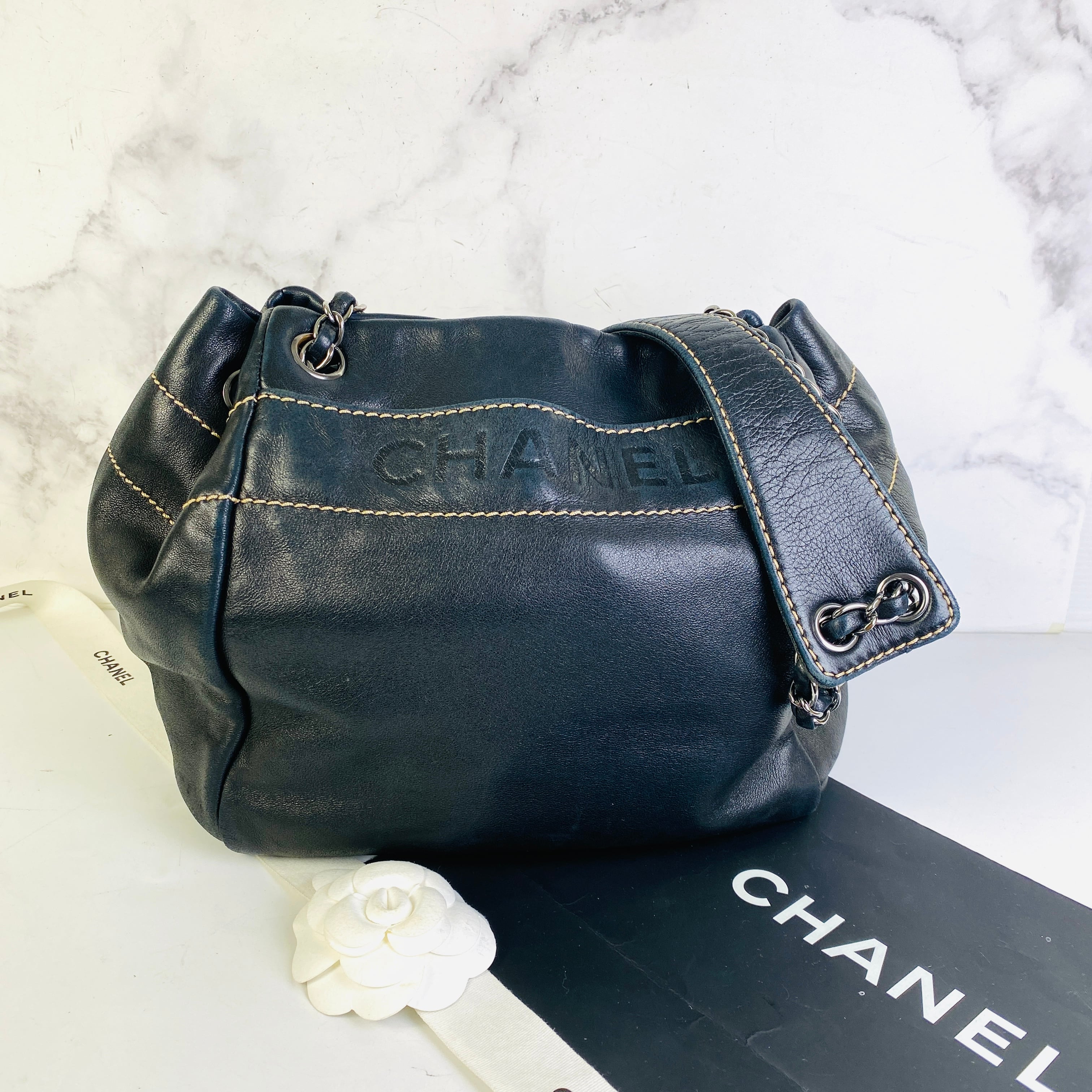 美品 CHANEL シャネル シャネル文字 ラムスキン ショルダーバッグ ブラック A-5583
