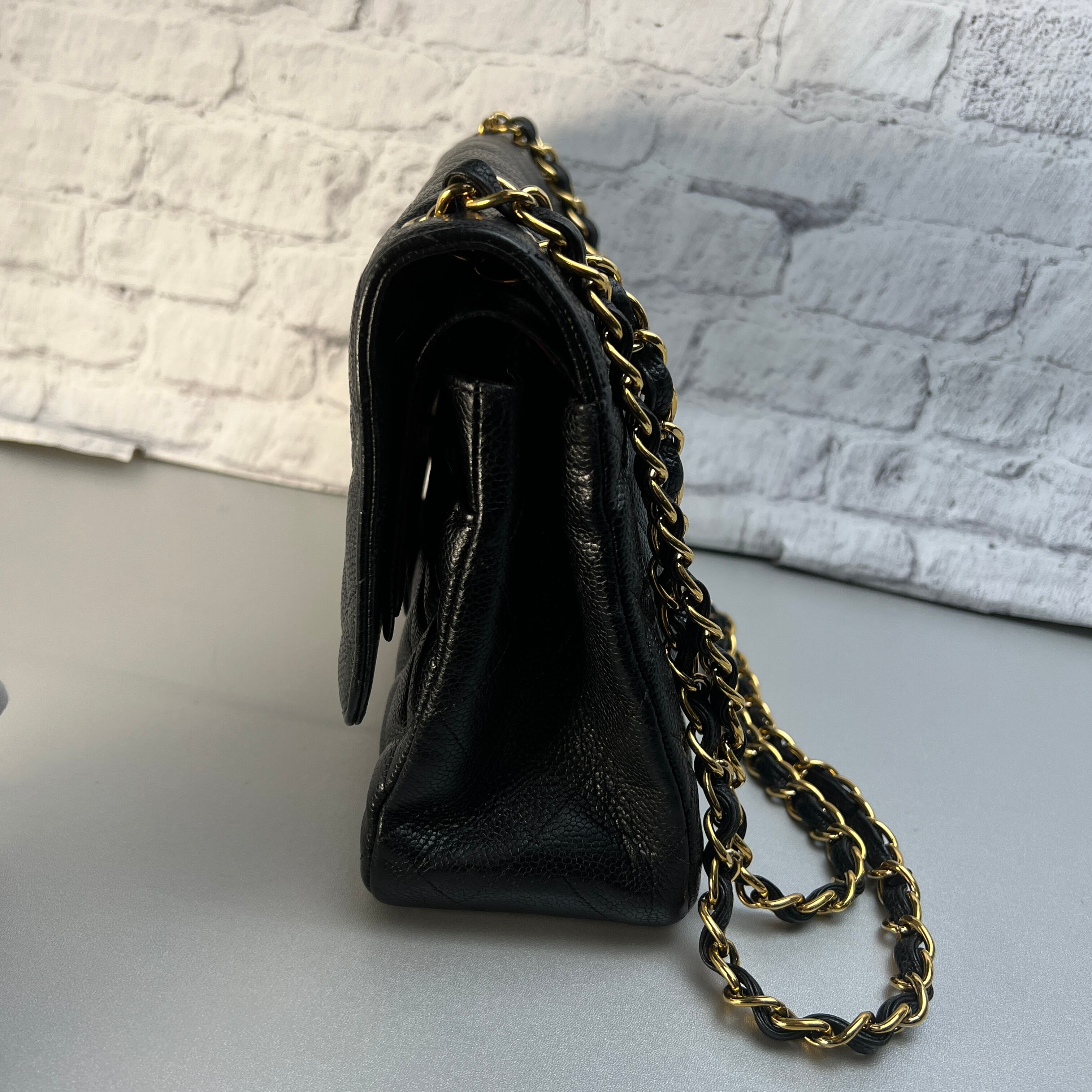美品 CHANEL シャネル マトラッセ キャビアスキン ショルダーバッグ ブラック A-11624