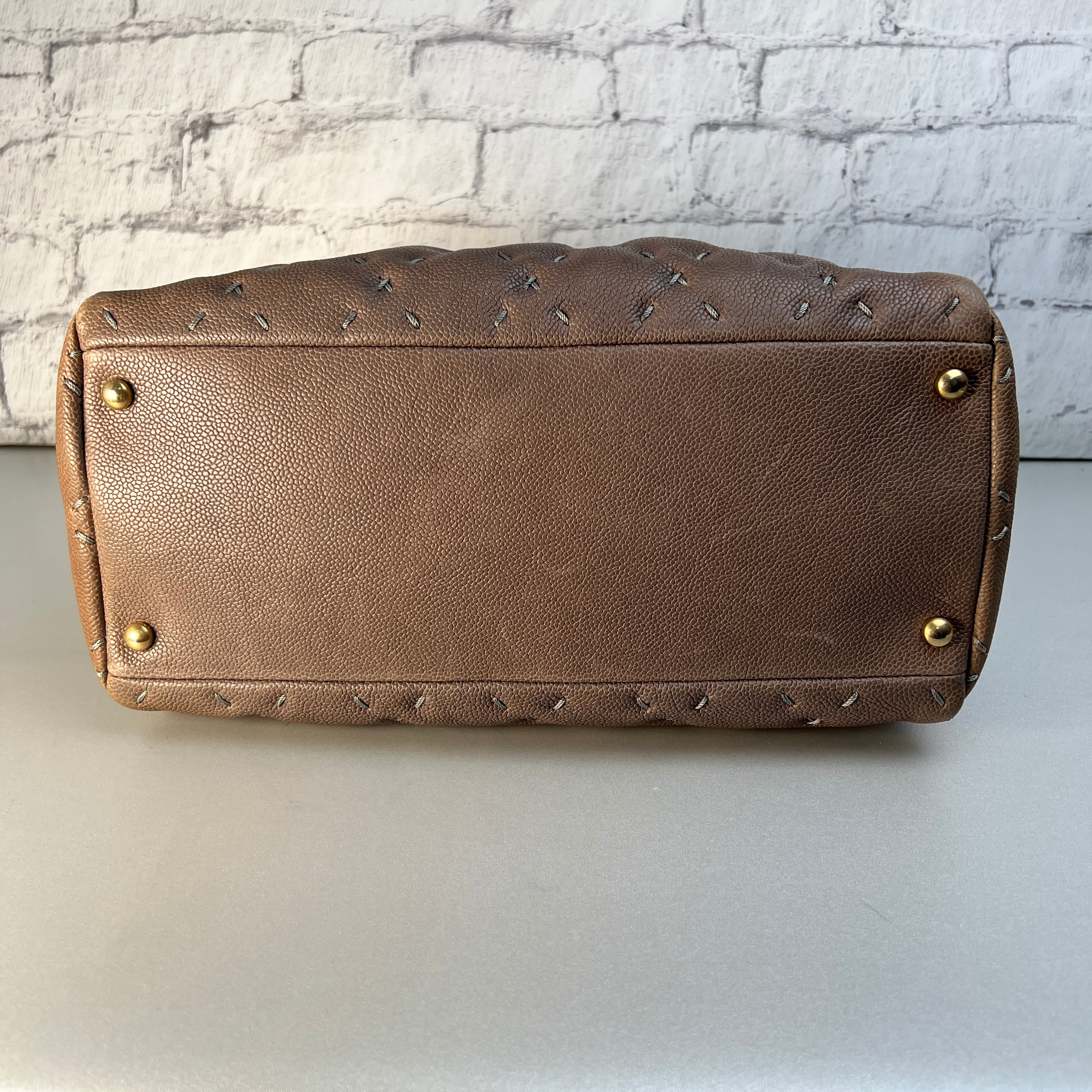 美品 CHANEL シャネル ワイルドステッチ ココマーク レザー ハンドバッグ ブラウン A-11747