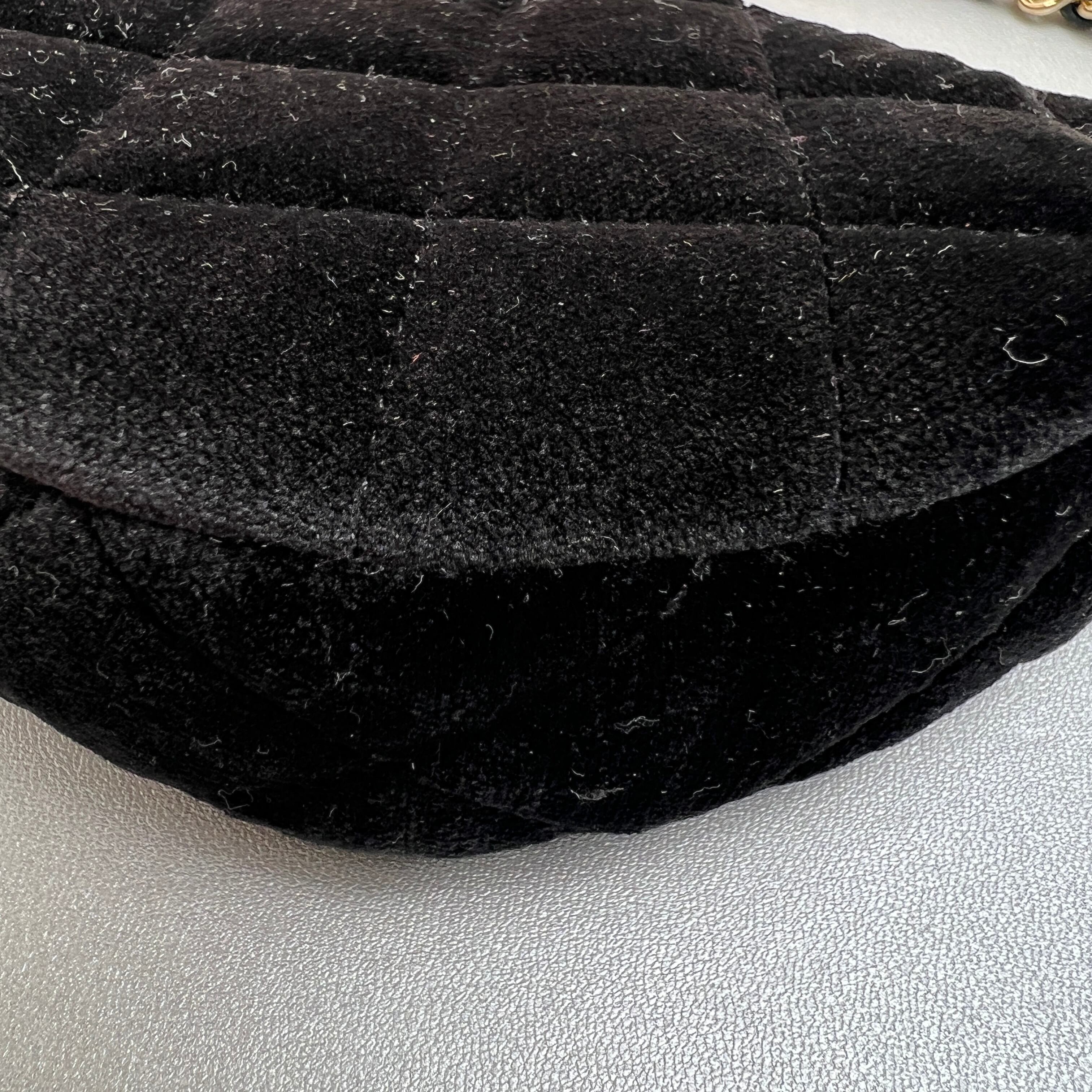 美品 CHANEL シャネル ハーフムーン ココマーク ベロア ショルダーバッグ ブラック A-11840