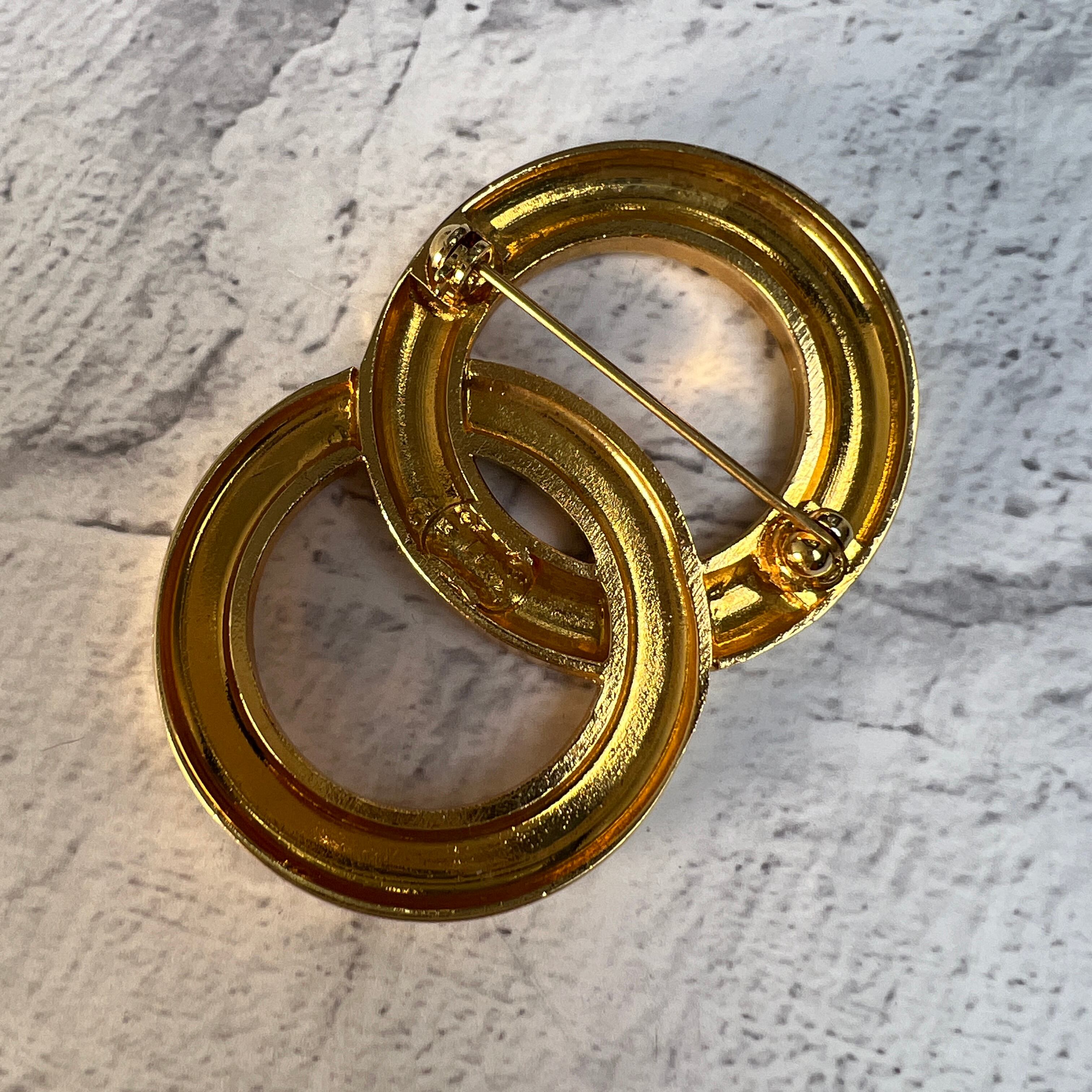 良品 CELINE セリーヌ ストーン ブローチ ゴールド A-11860