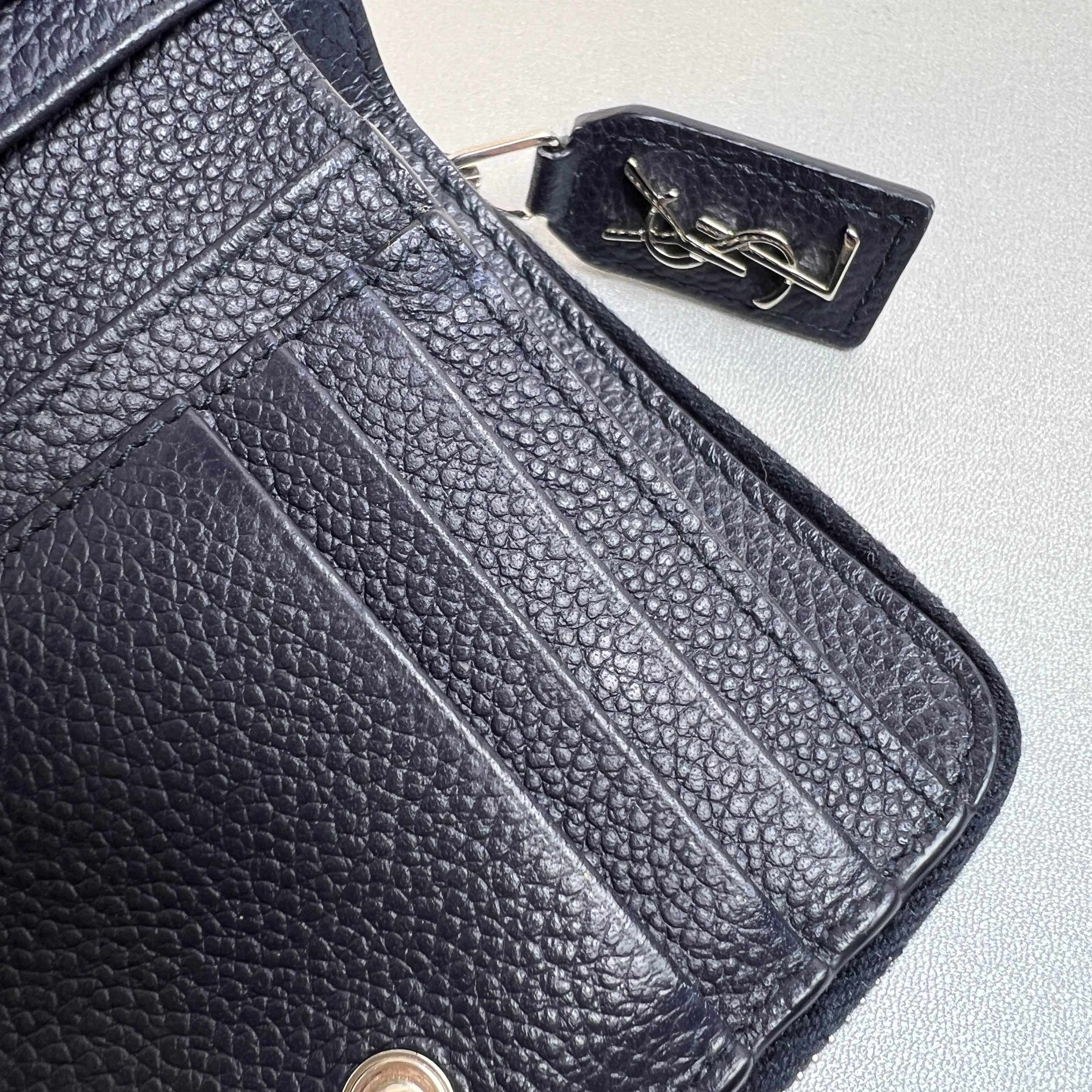SAINT LAURENT レザー カサンドラ 三つ折り財布 ネイビー A-11732