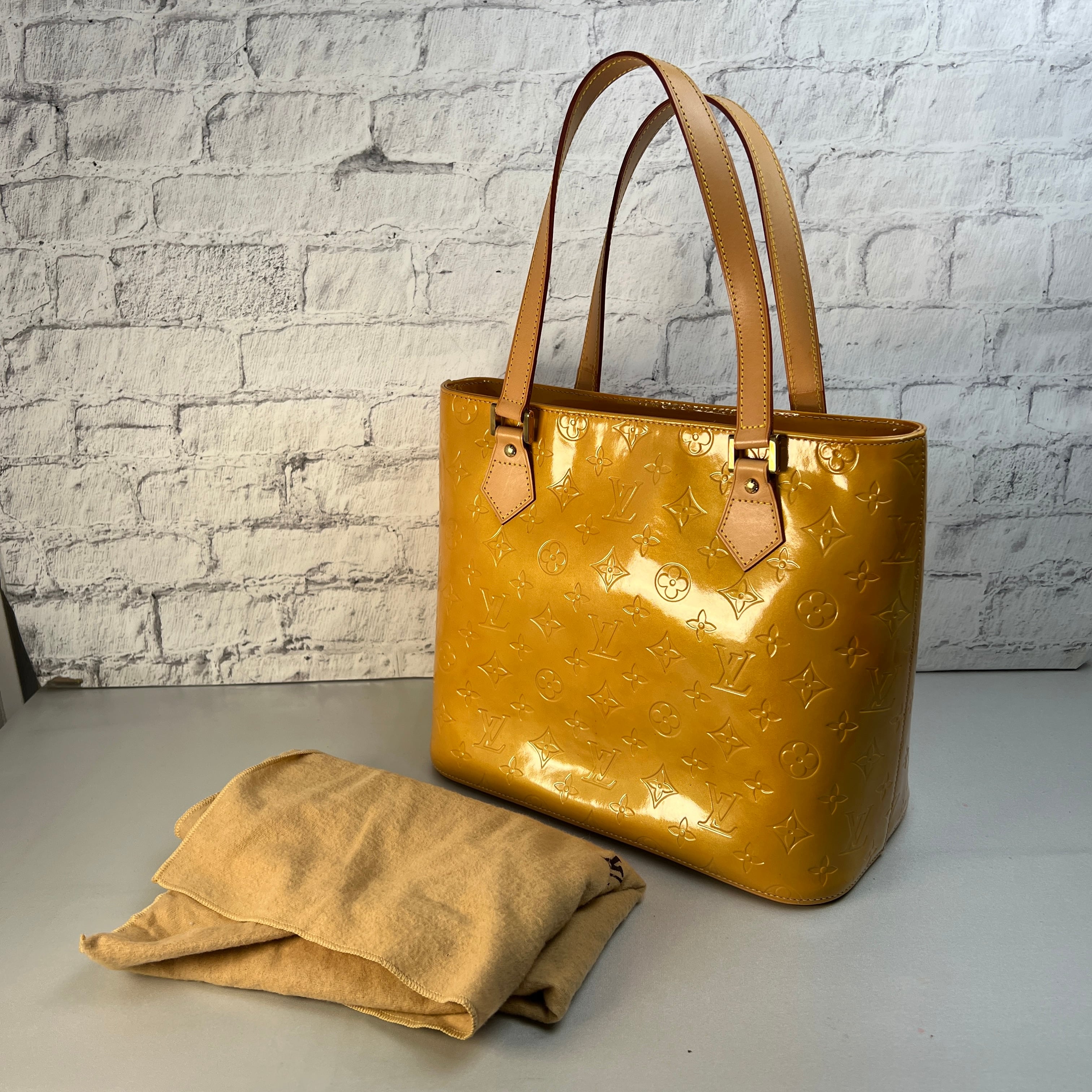 良品 LOUIS VUITTON ルイヴィトン モノグラムヴェルニ ヒューストン エナメル/パテントレザー ハンドバッグ イエロー A-11533