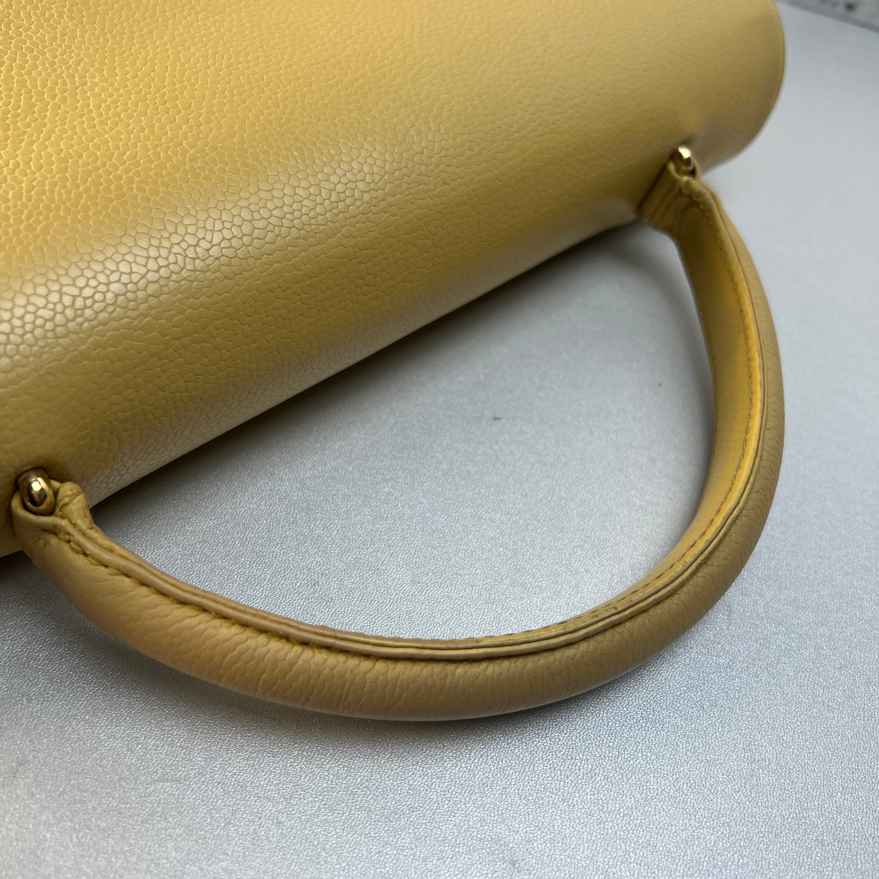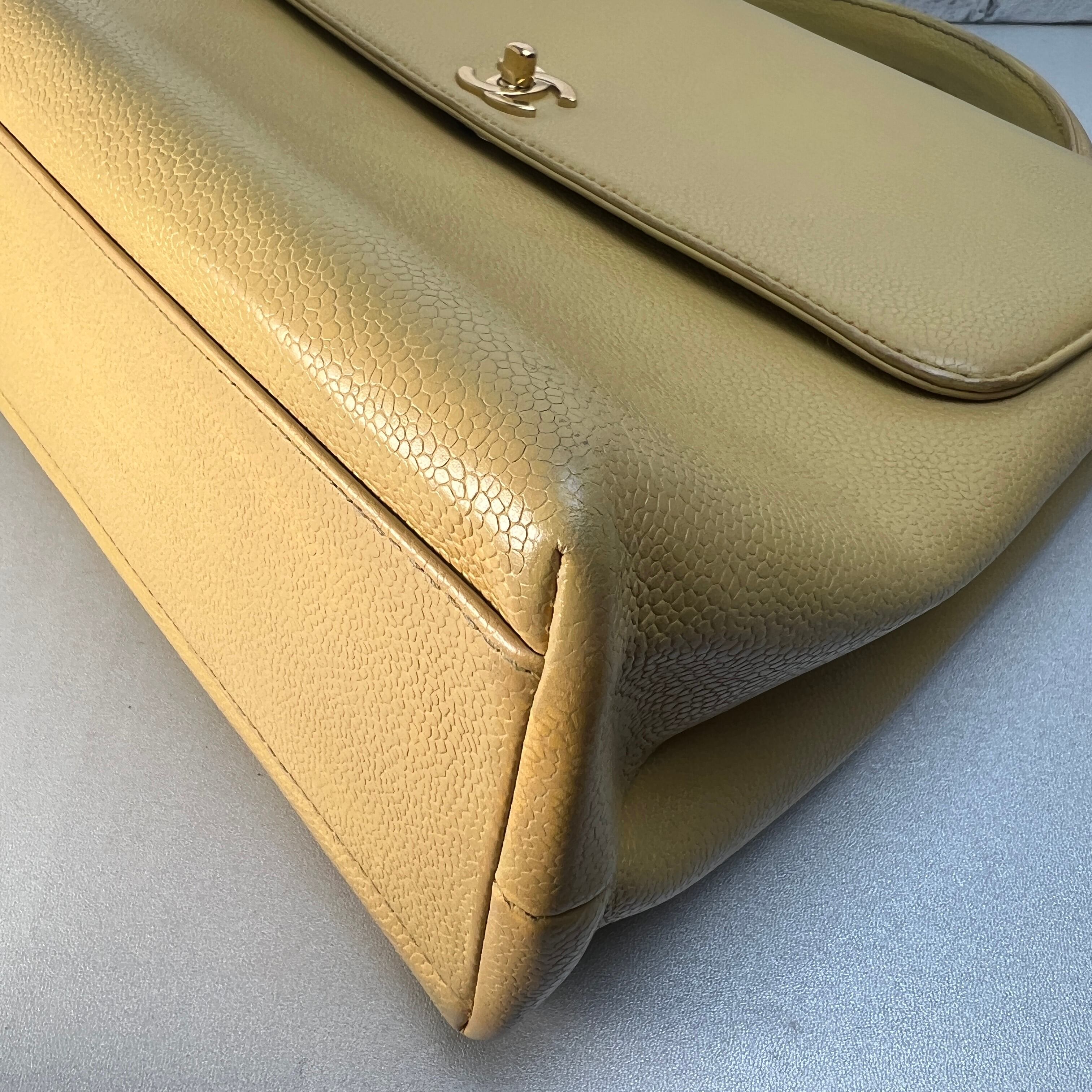 良品 CHANEL シャネル ココマーク ターンロック キャビアスキン ハンドバッグ ベージュ A-12284