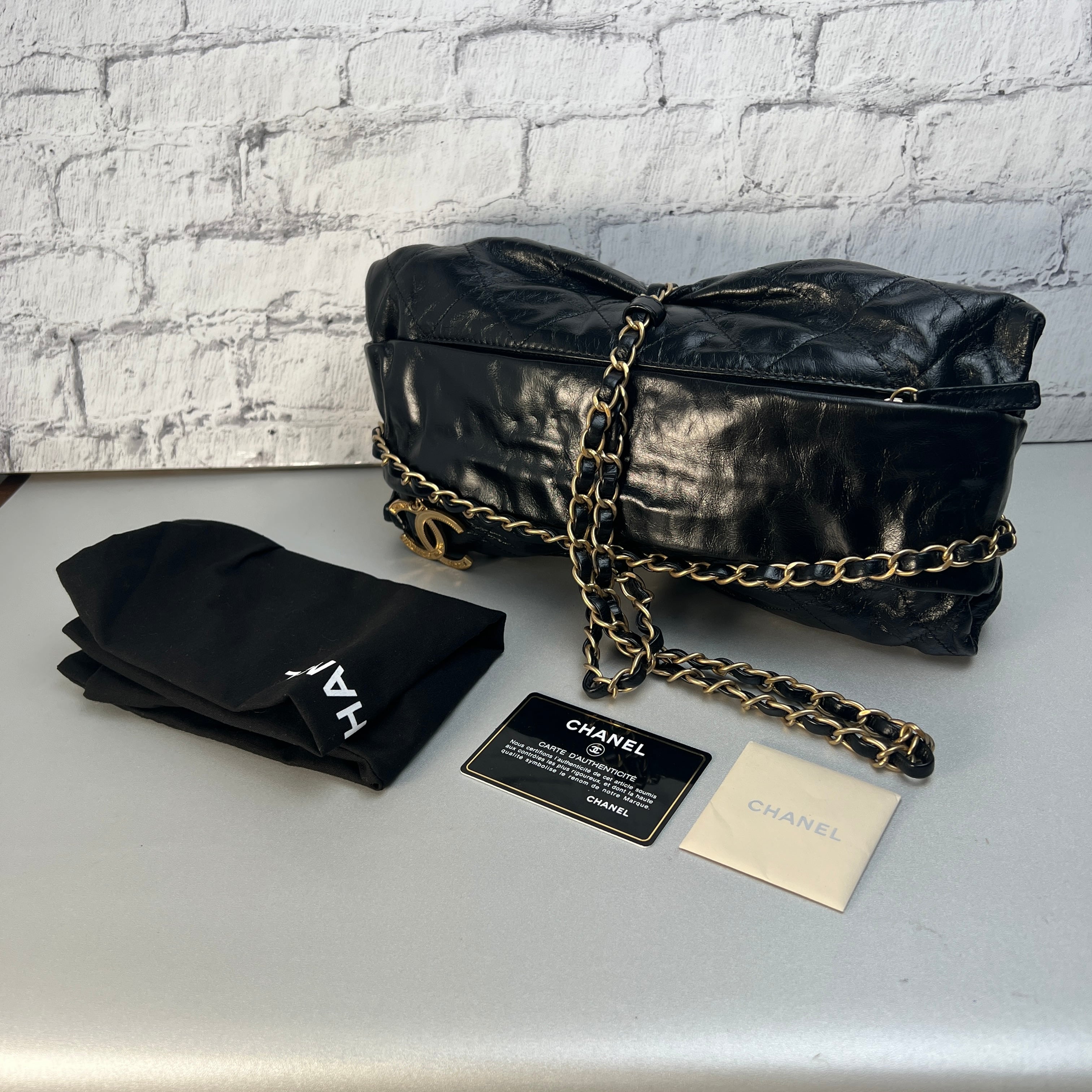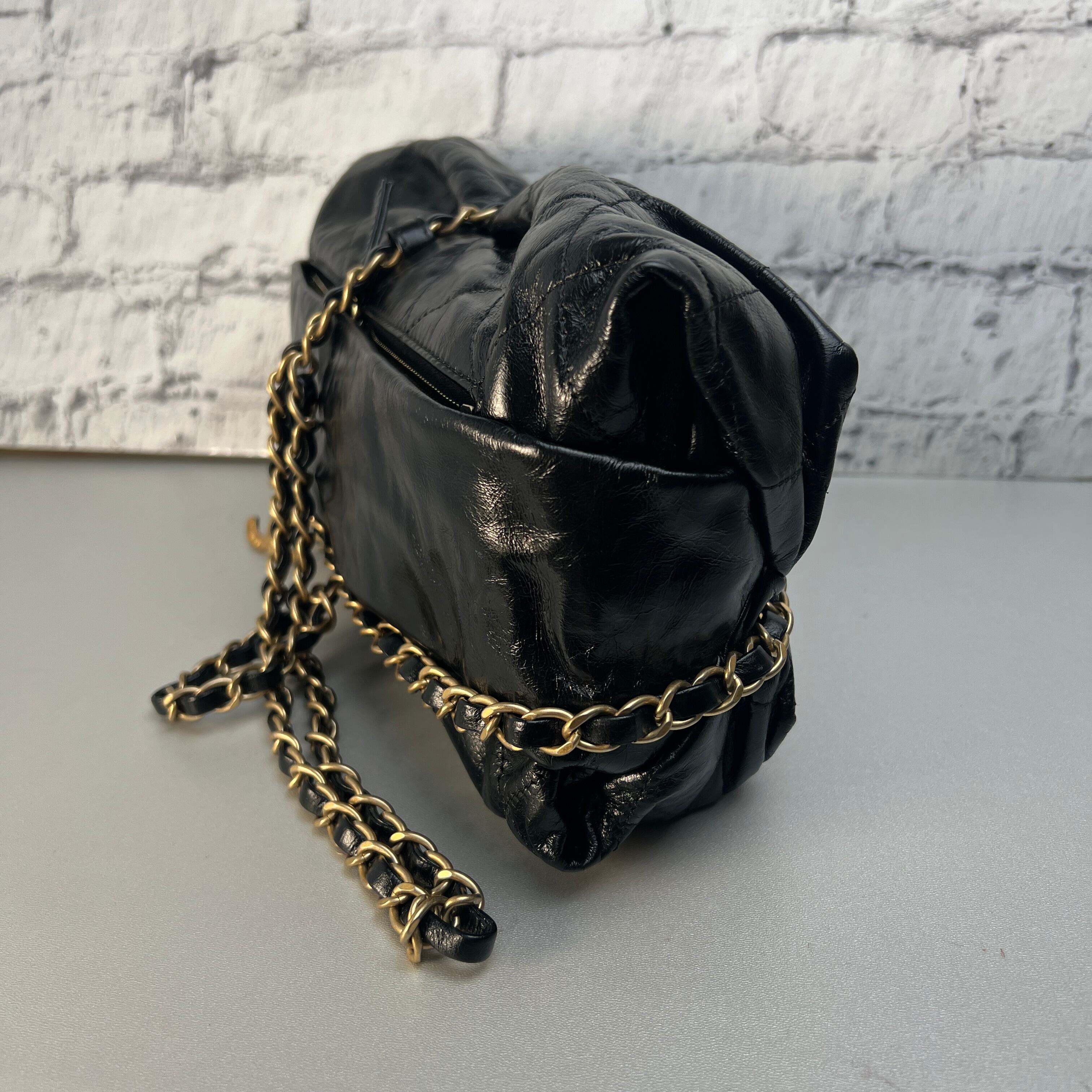 美品 CHANEL シャネル ココマーク シャイニーカーフ クラッチバッグ ブラック A-9484