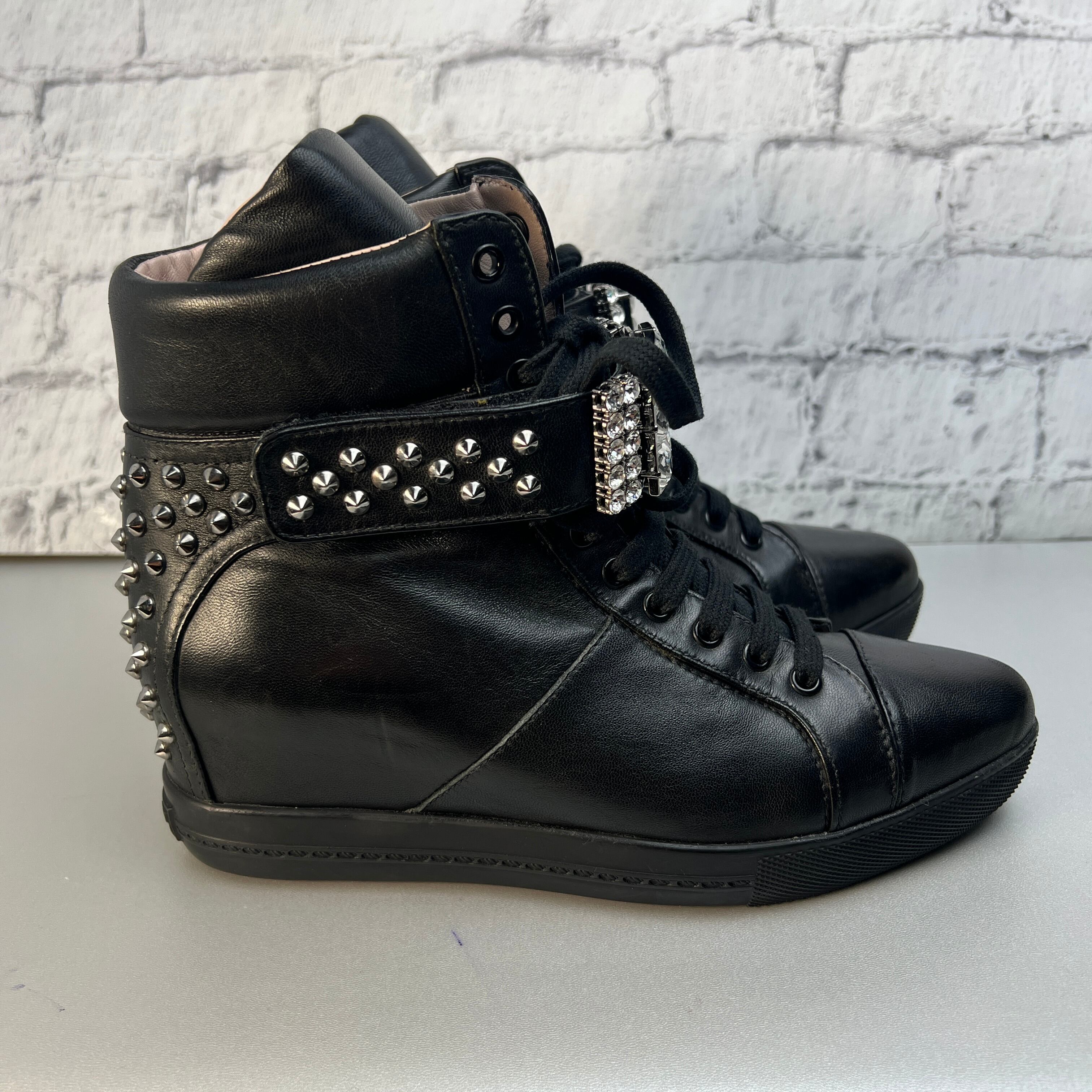 【最終処分SALE】miumiu ミュウミュウ ハイカット スニーカー スタッズ ビジュー 靴 ブラック A-10528