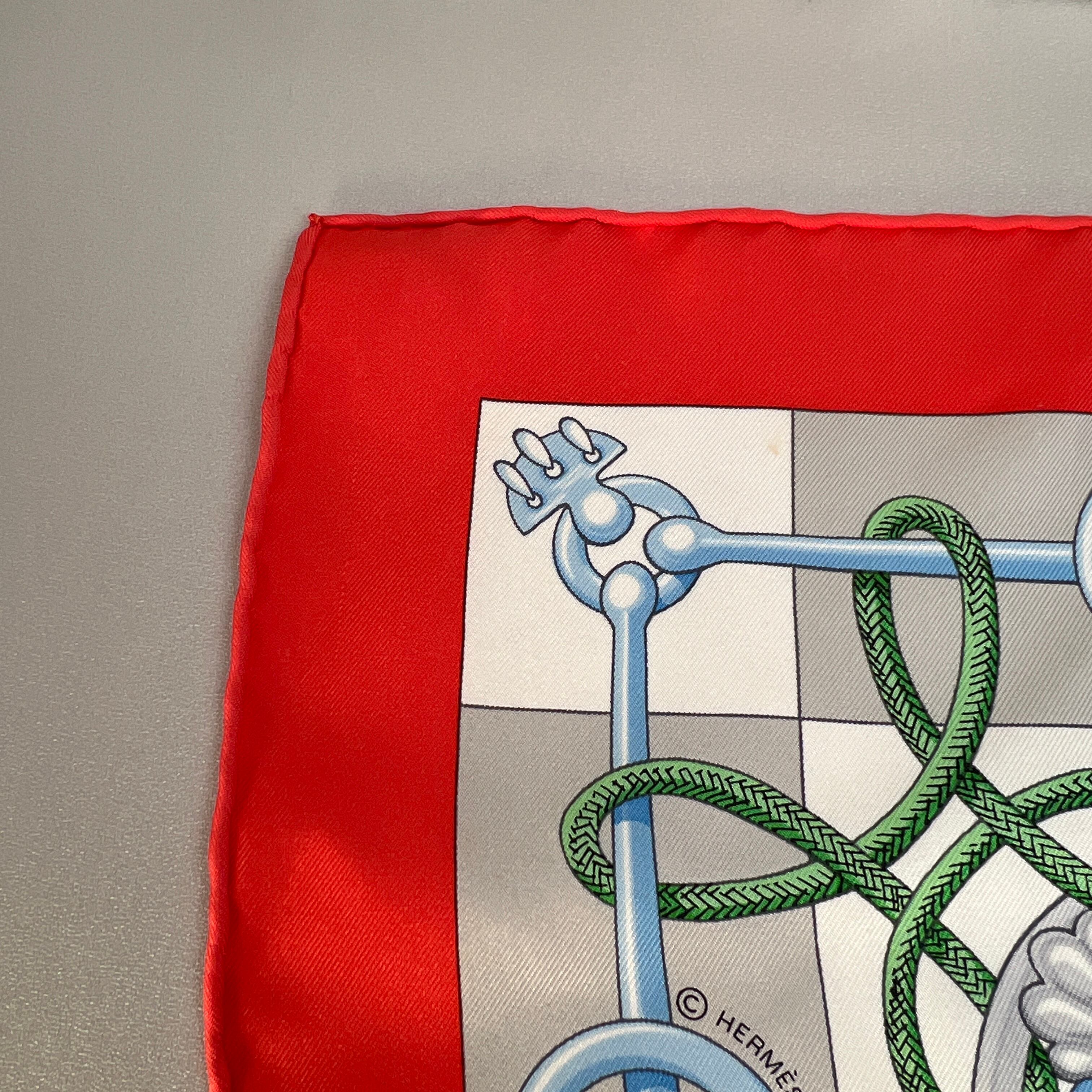 良品 HERMES エルメス シルク スカーフ レッド A-10560