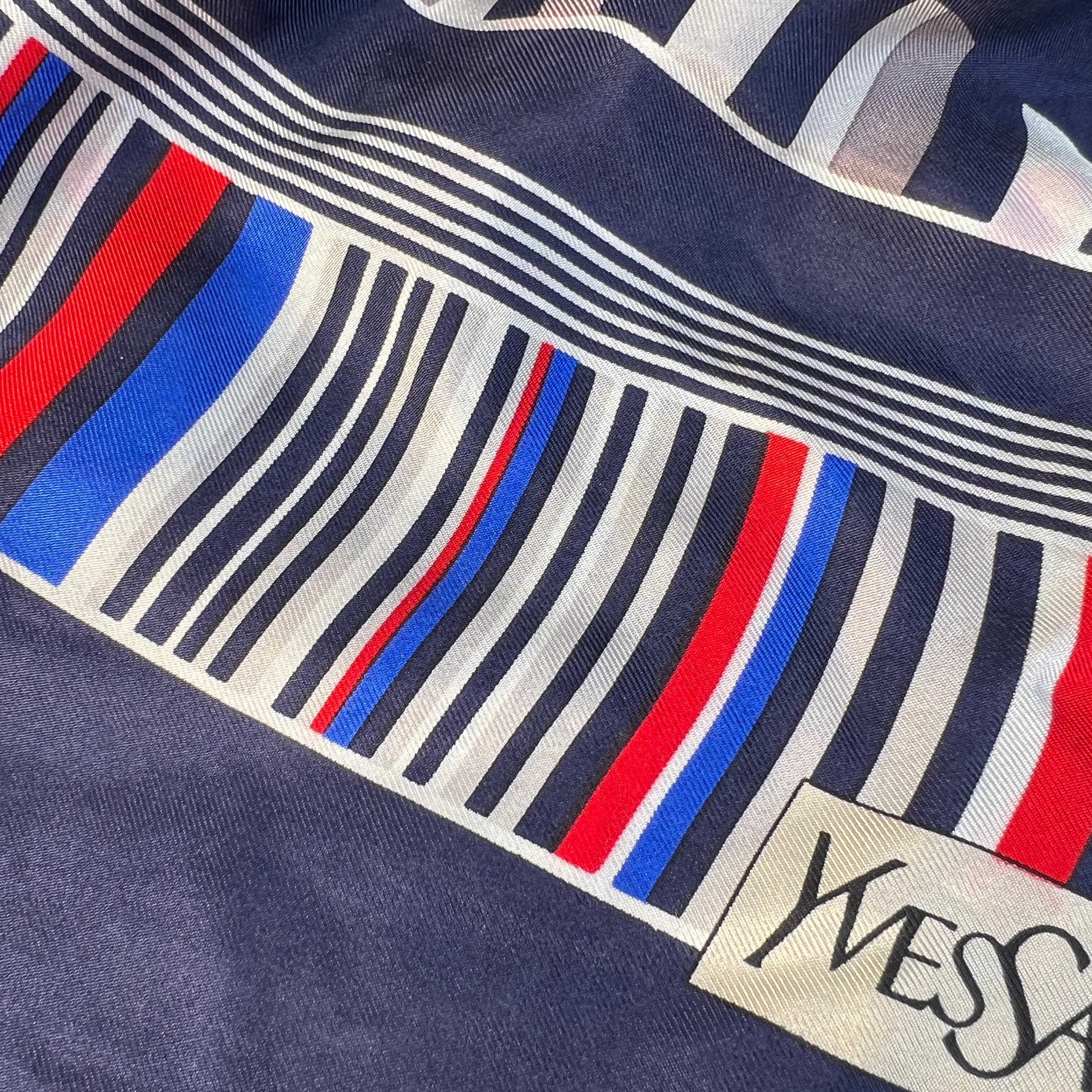 【最終処分SALE】Yves Saint Laurent イブサンローランタグ付き スカーフ ブルー A-10876