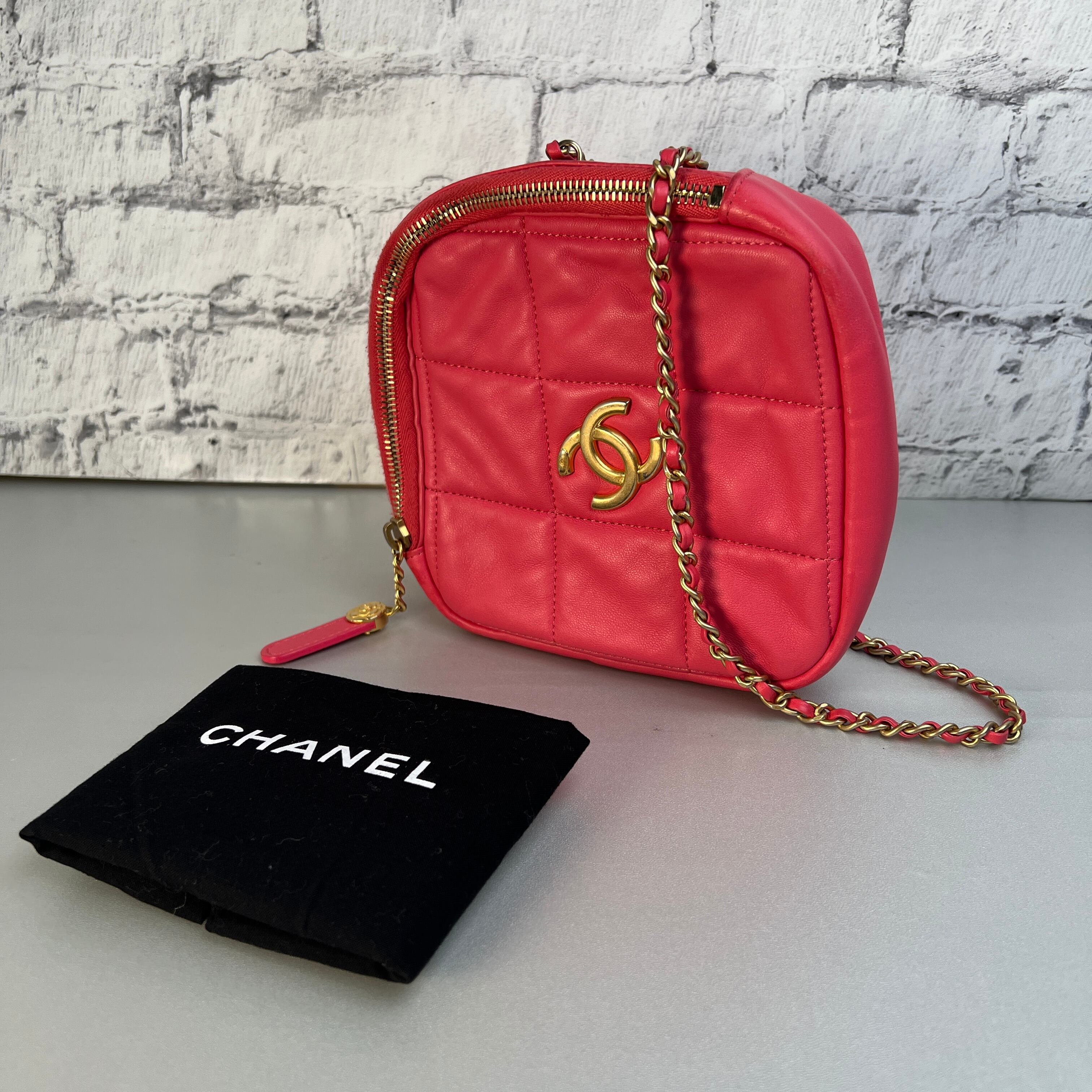 美品 CHANEL シャネル ココマーク スクエア ラムスキン ショルダーバッグ ピンク A-10886