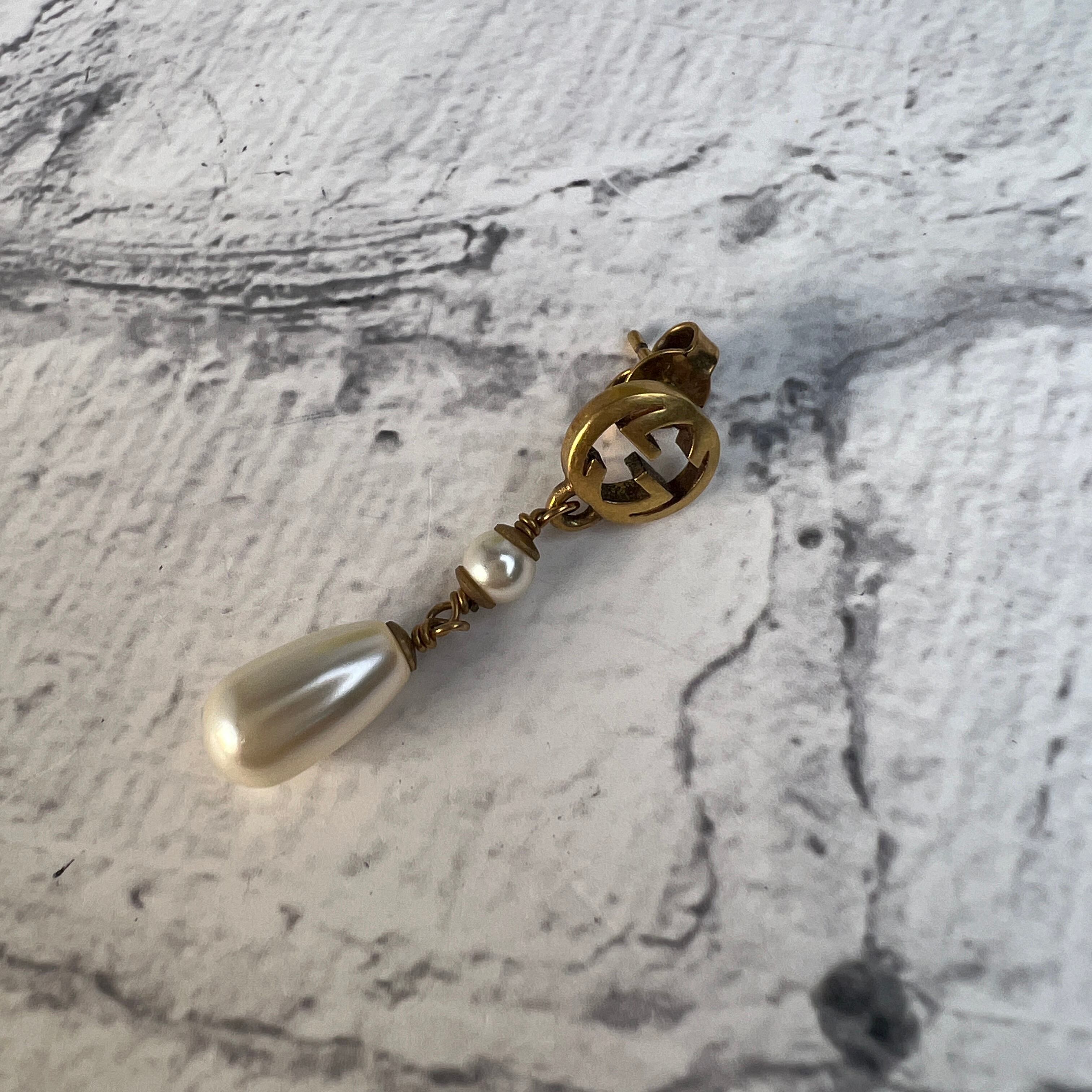 良品 GUCCI グッチ パール ピアス ゴールド A-10914