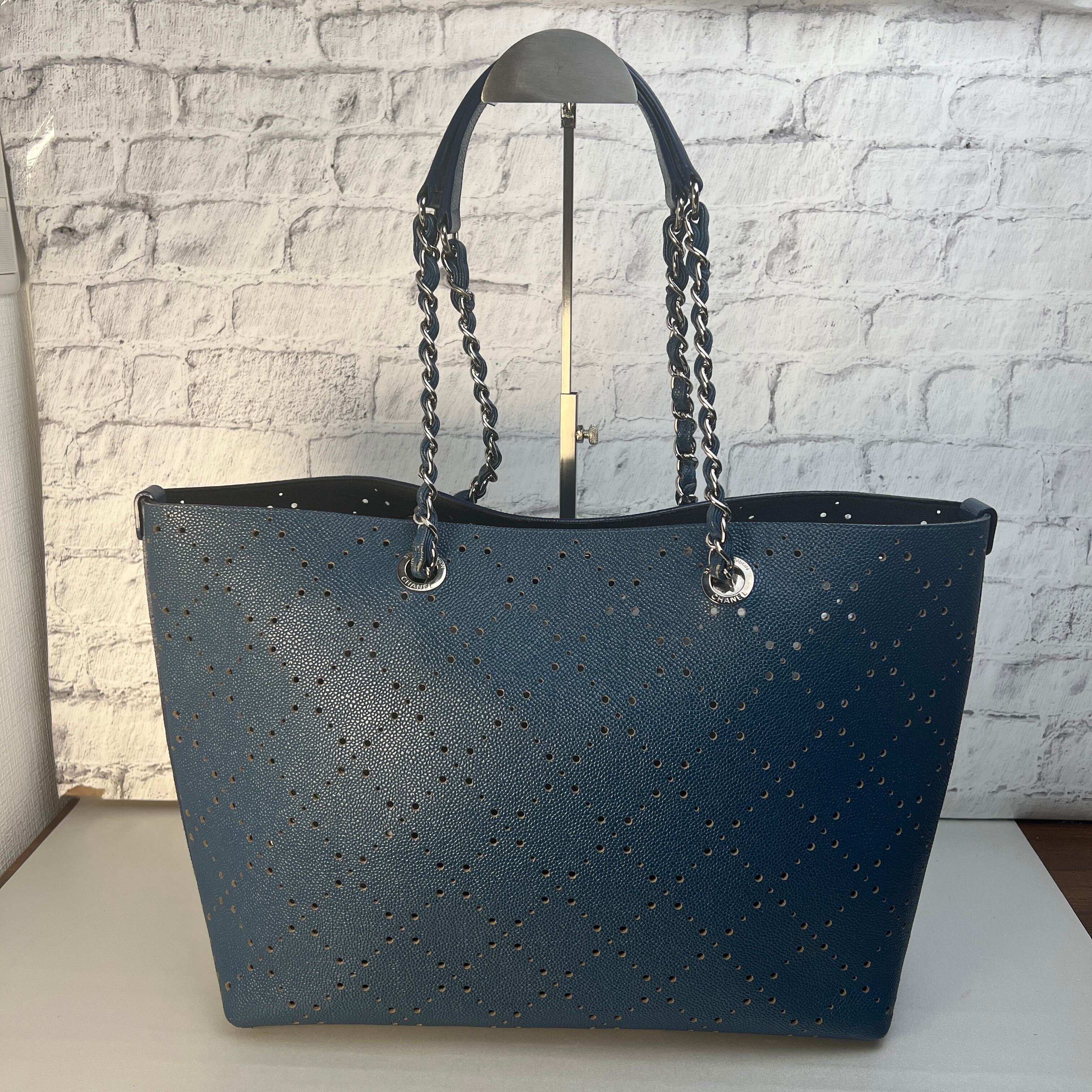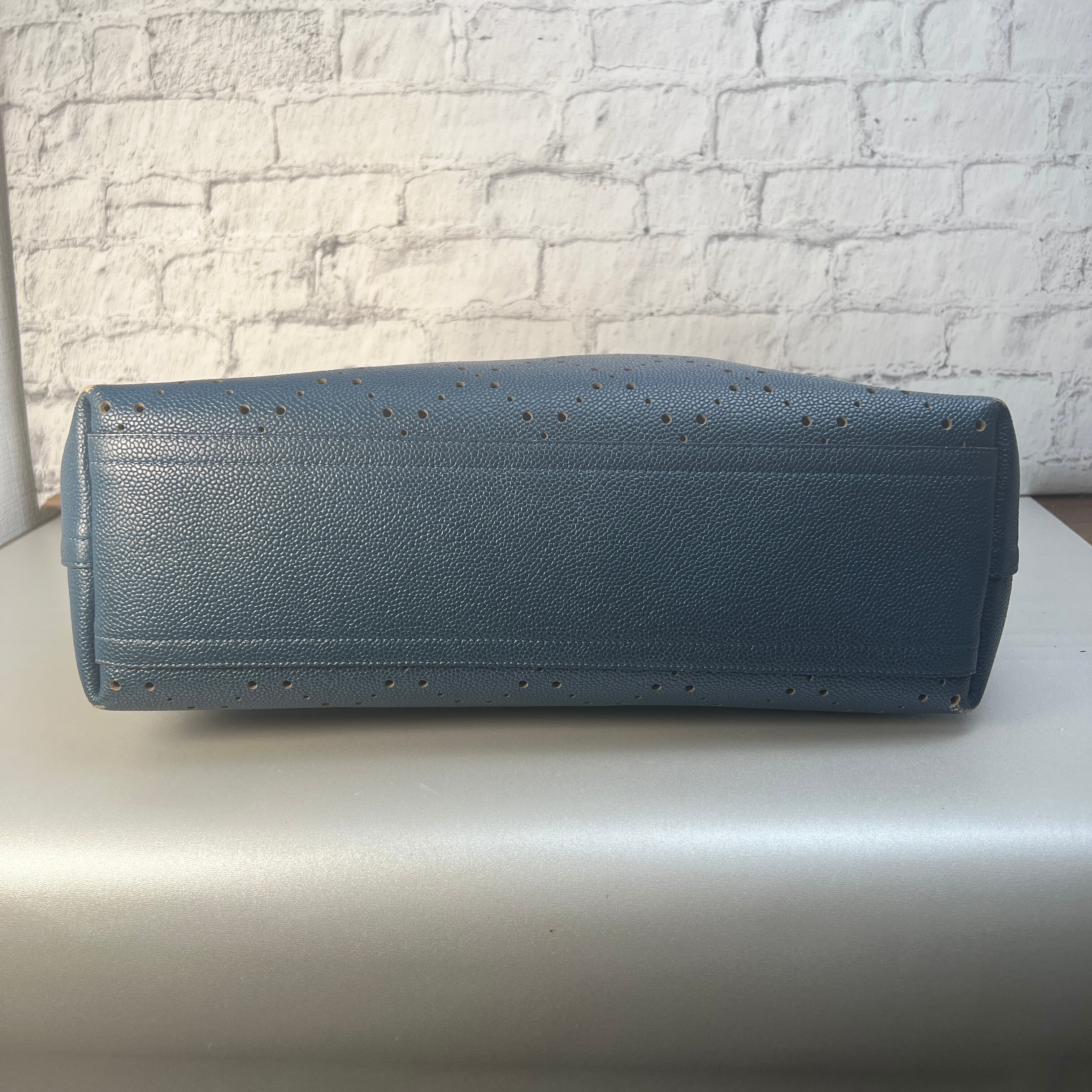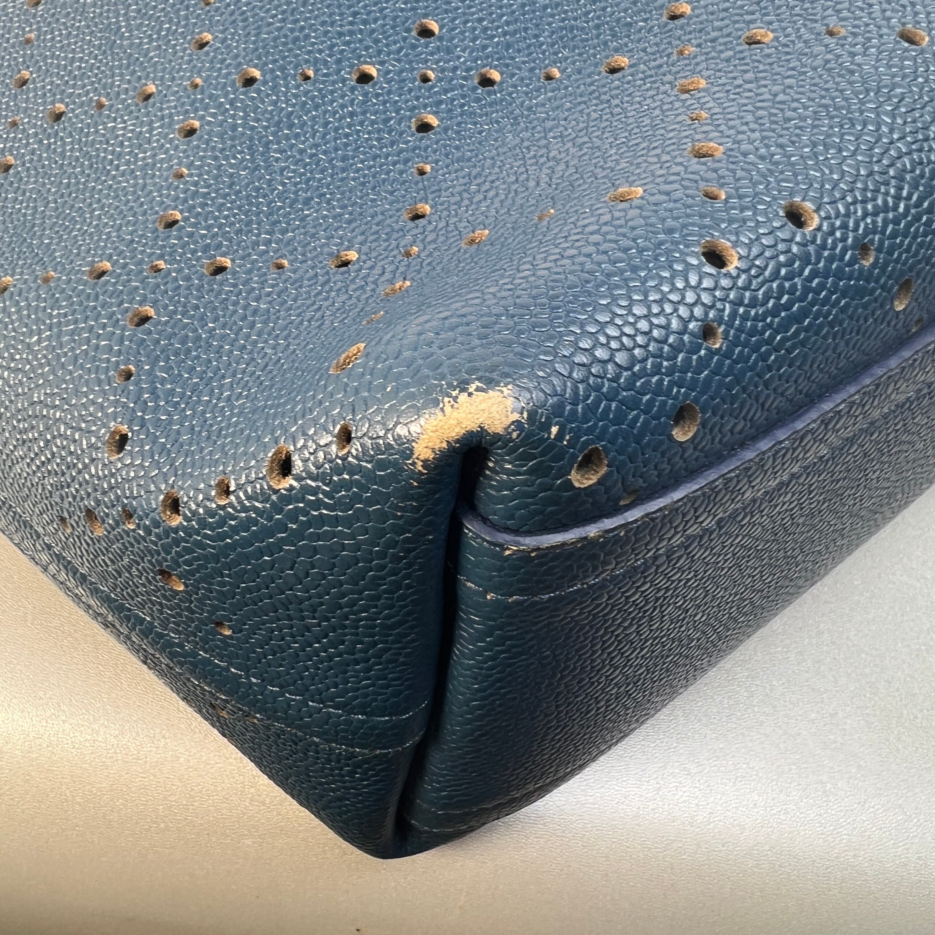 【最終処分SALE】シャネル ココマーク パンチング レザー トートバッグ ブルー A-10974