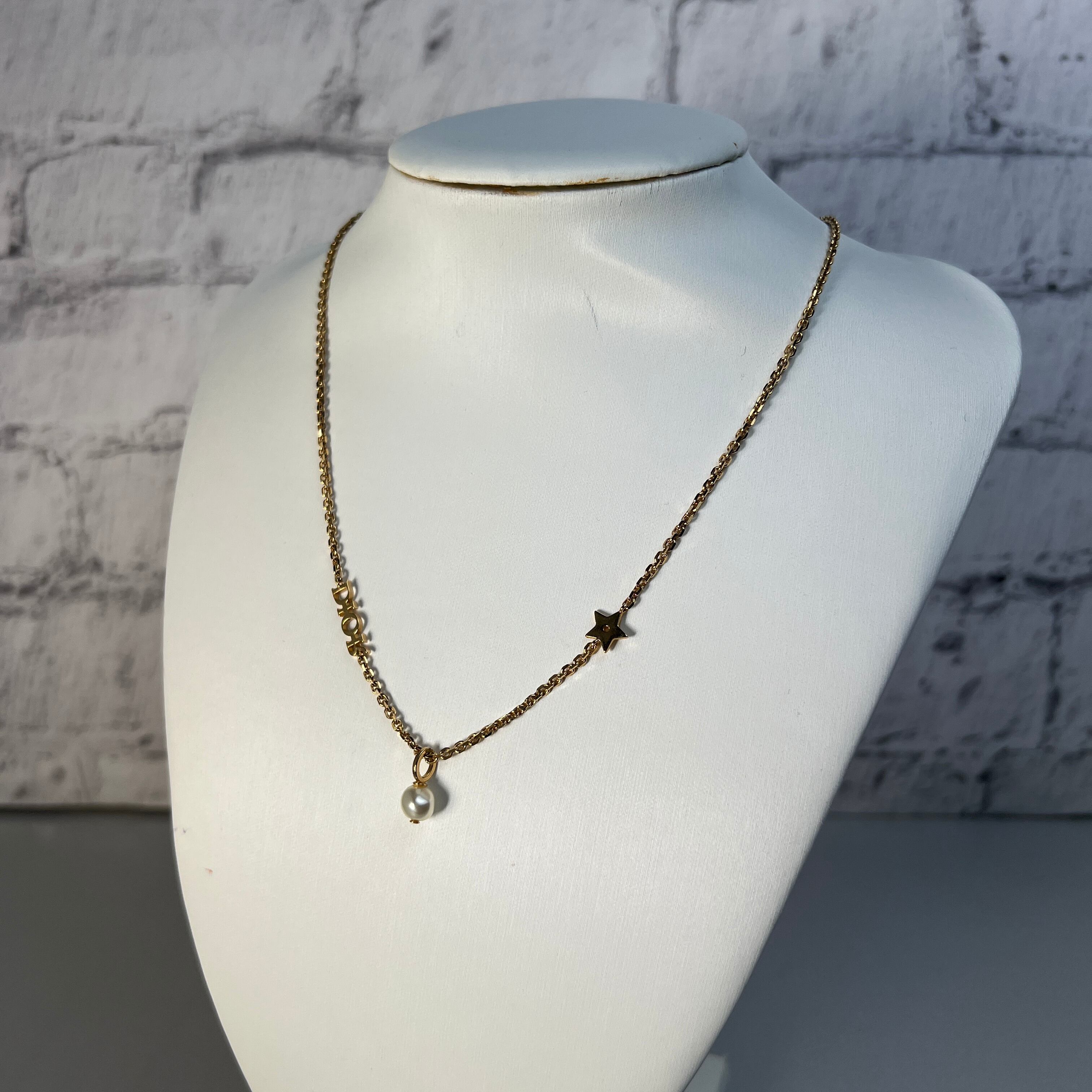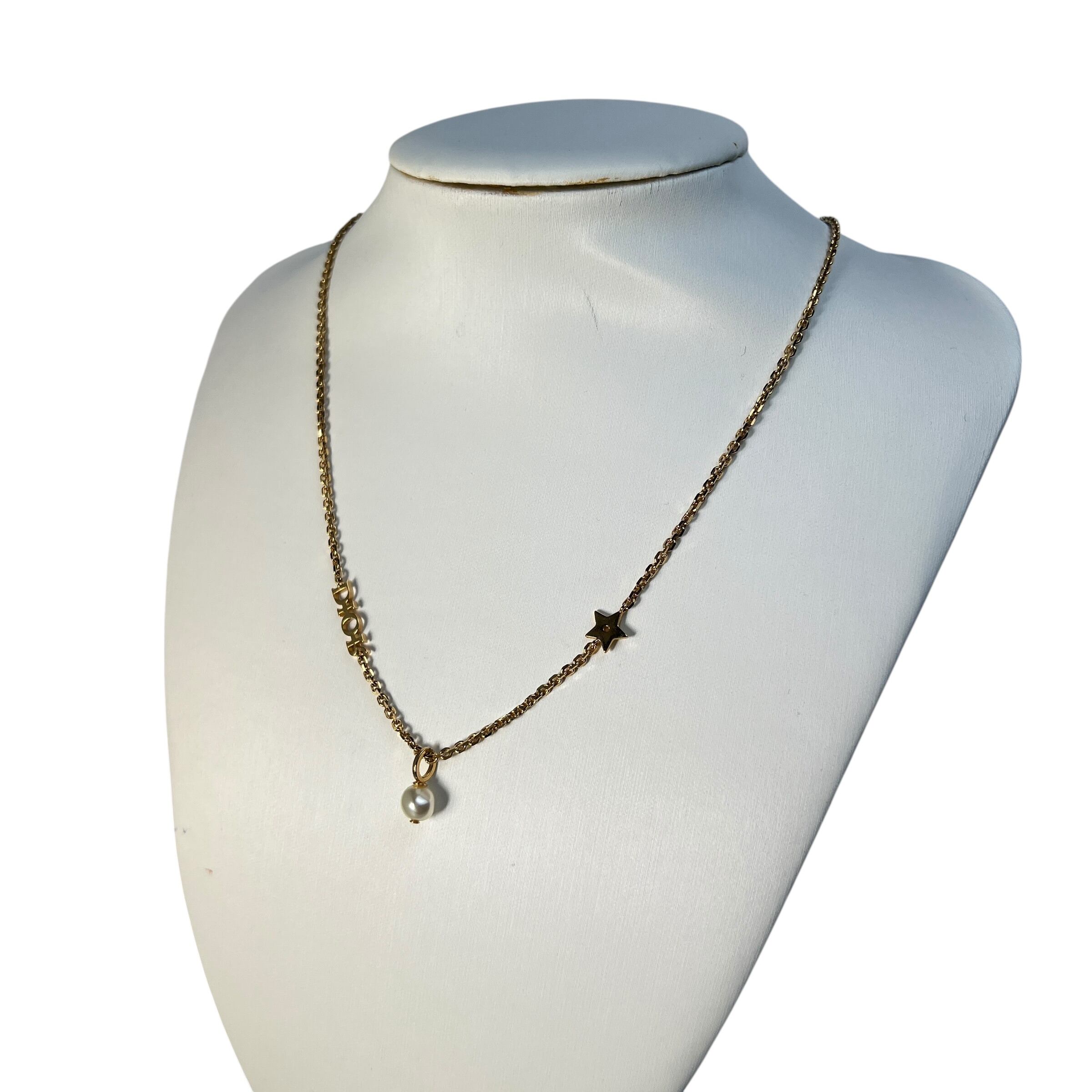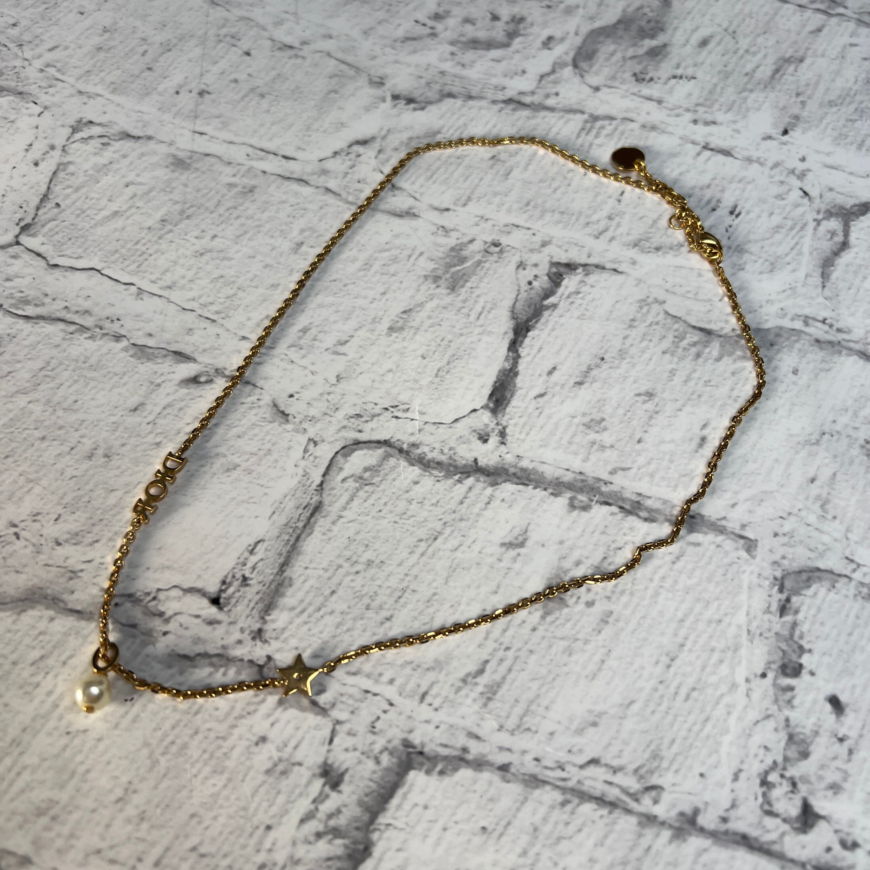 良品 ロゴマーク スター&フェイクパール Dior ネックレス ゴールド A-12155