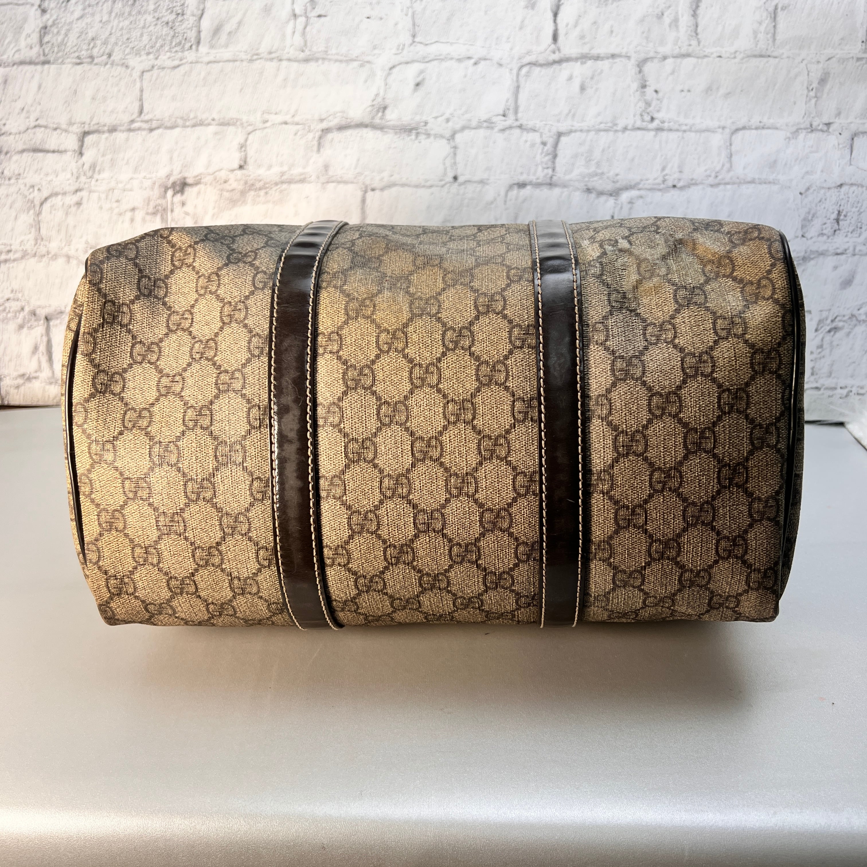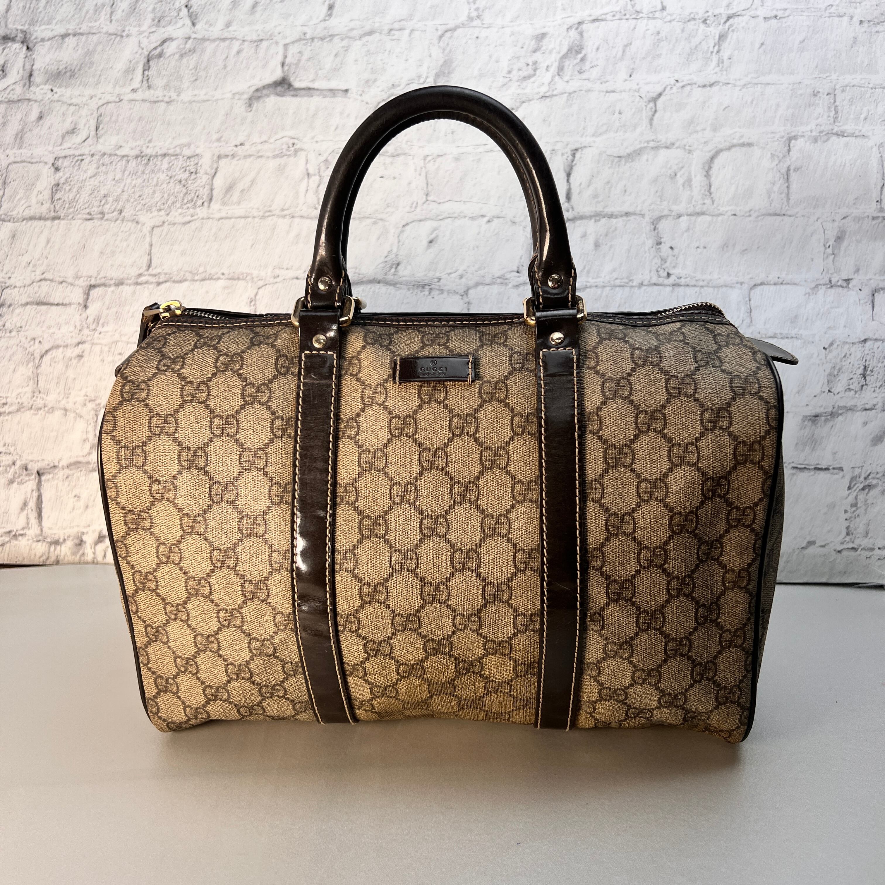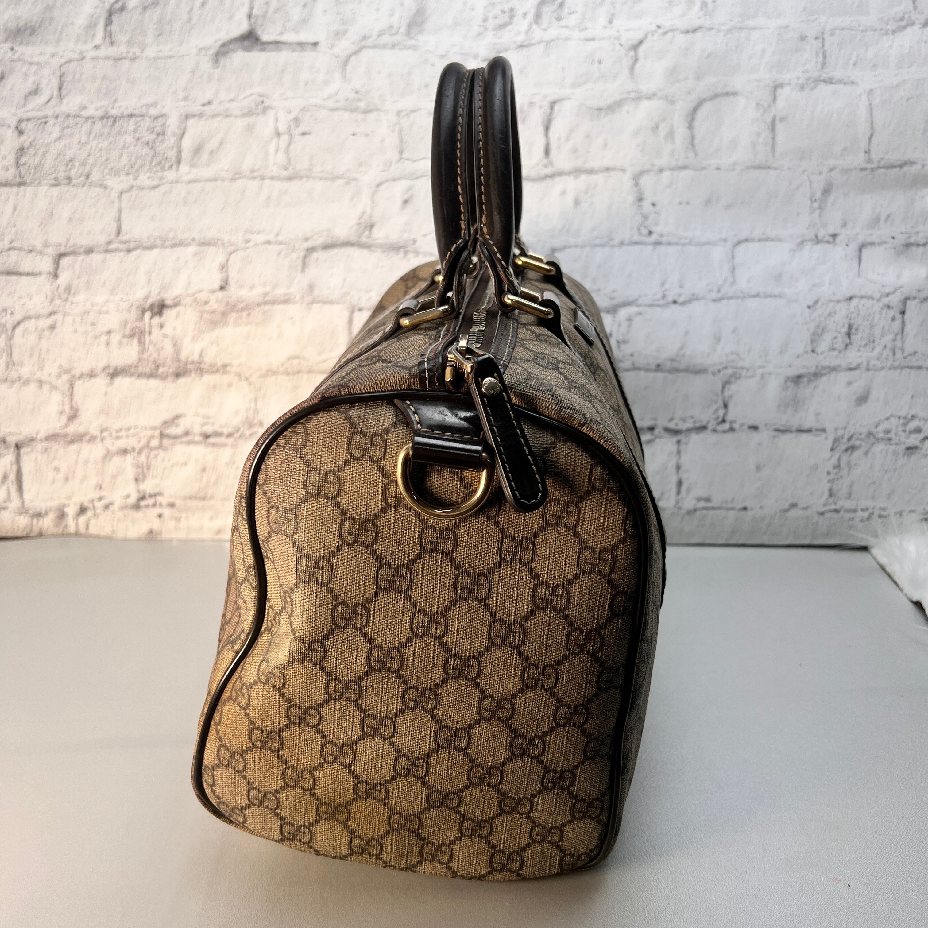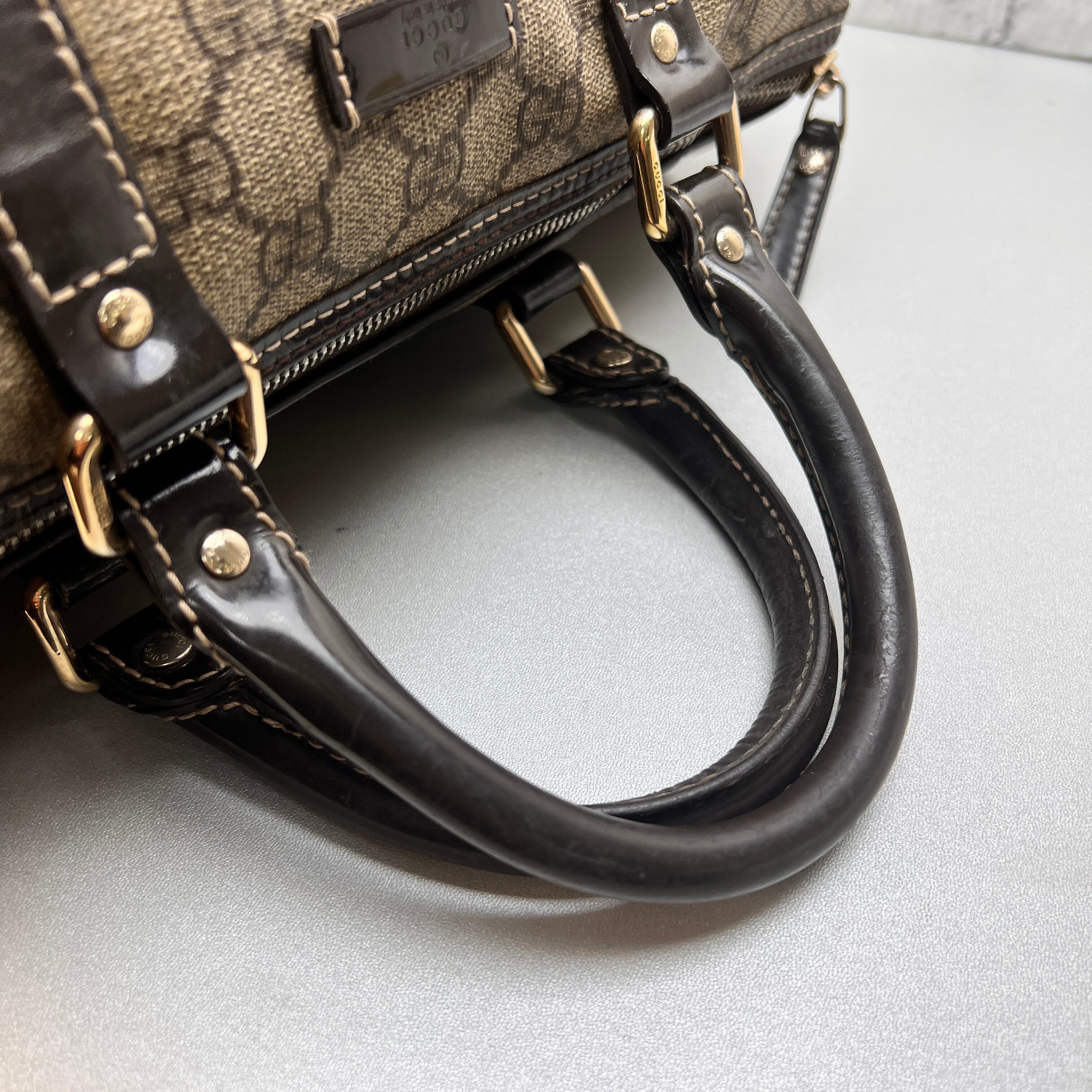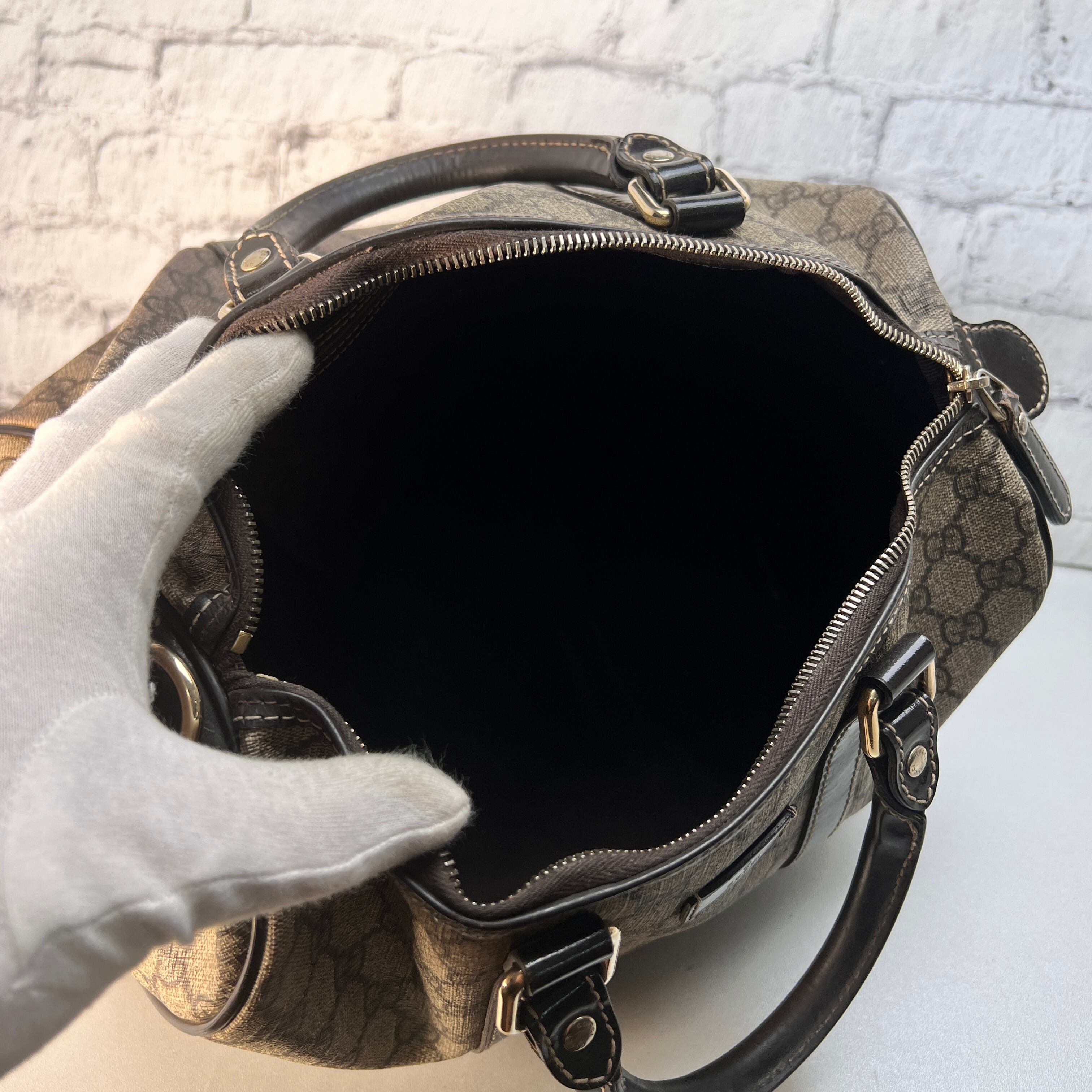 良品 GUCCI グッチ GGスプリーム ボストンバッグ ブラウン A-12147