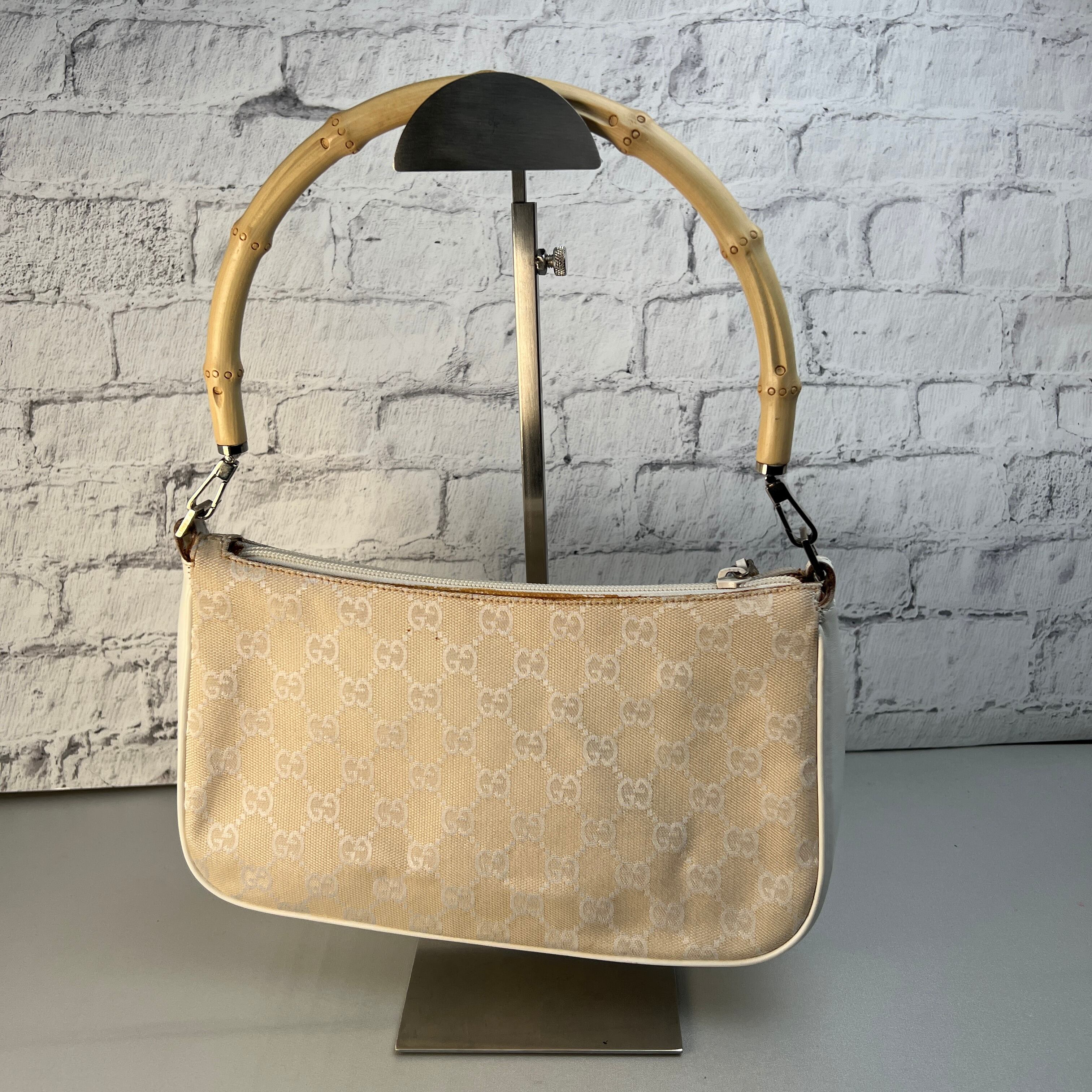 GUCCI グッチ バンブー GGキャンバス ハンドバッグ ホワイト A-12275